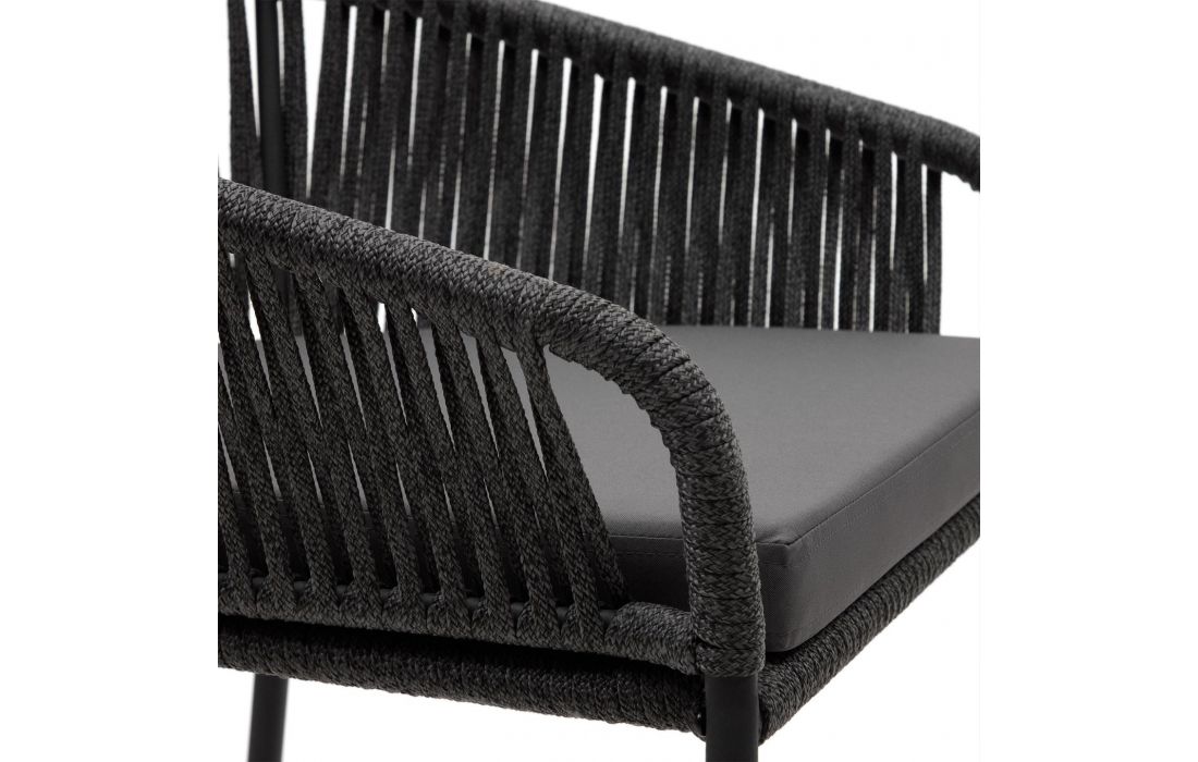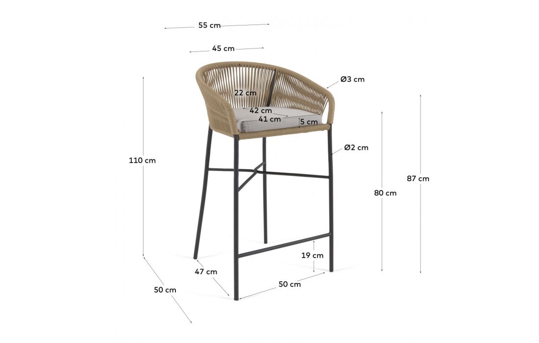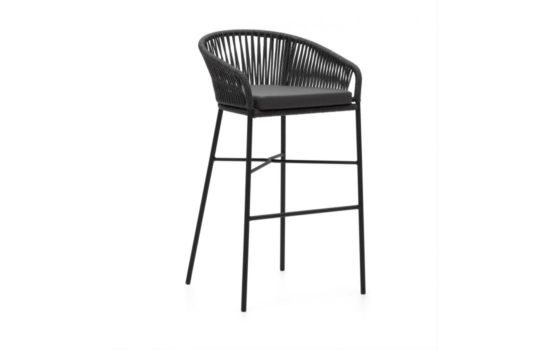 Bar stool in galvanized steel and rope with fabric cushion with removable cover.