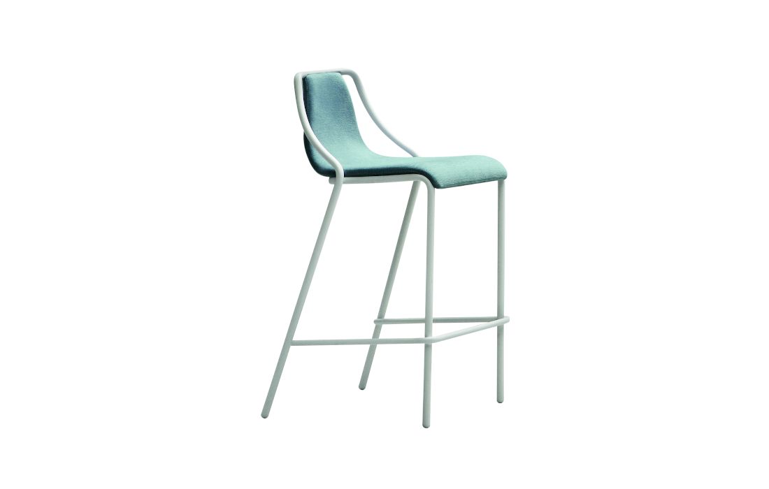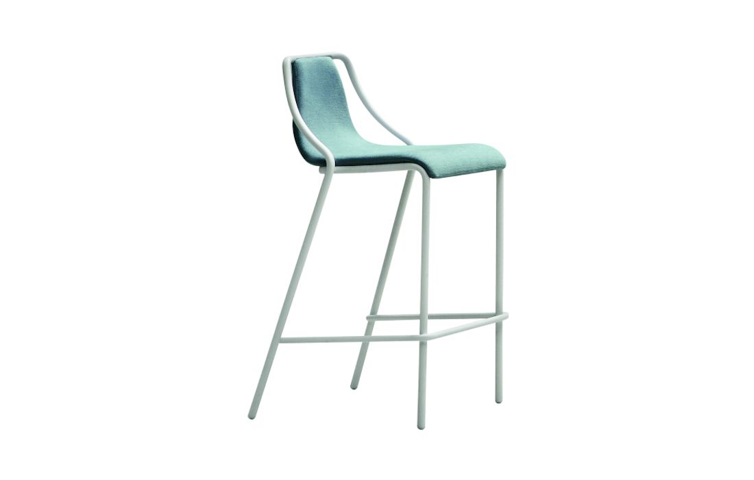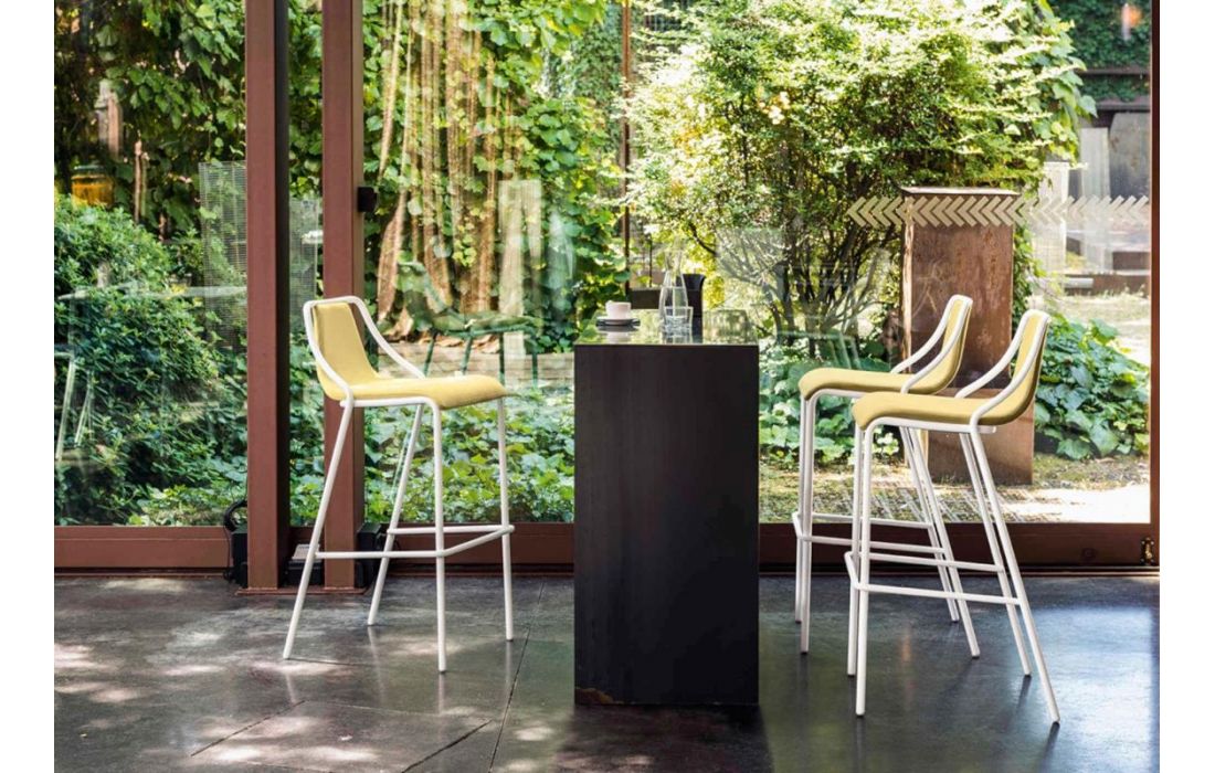 Stool bar with structure in lacquered metal and shell upholstered in leather or fabric.Recipient :