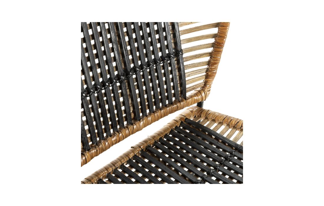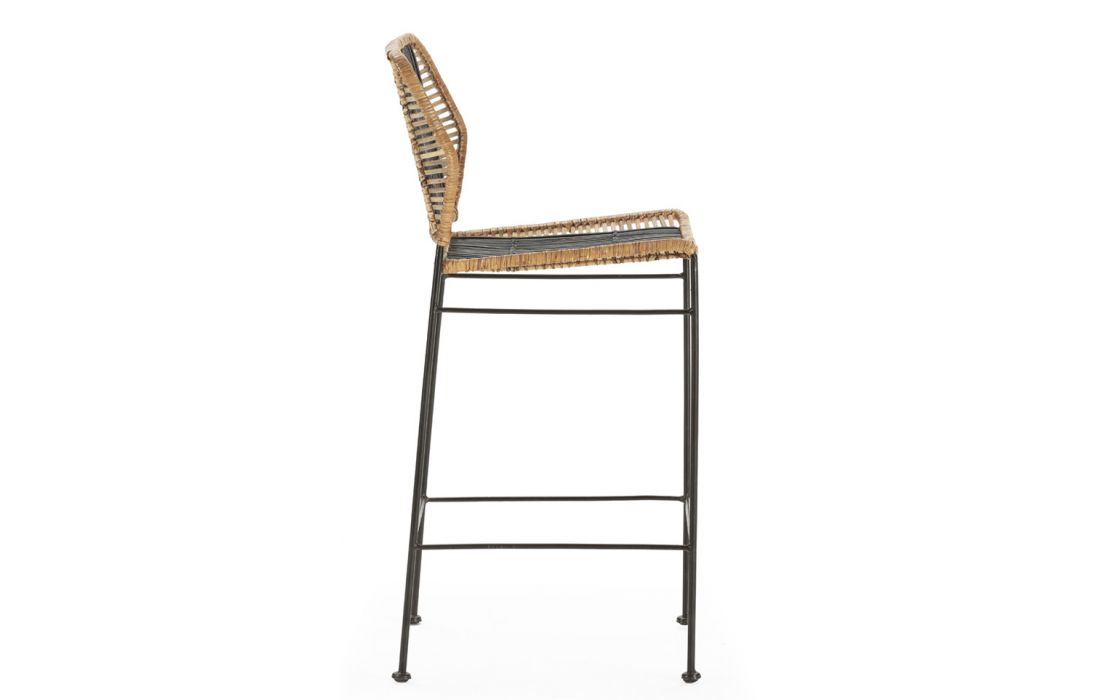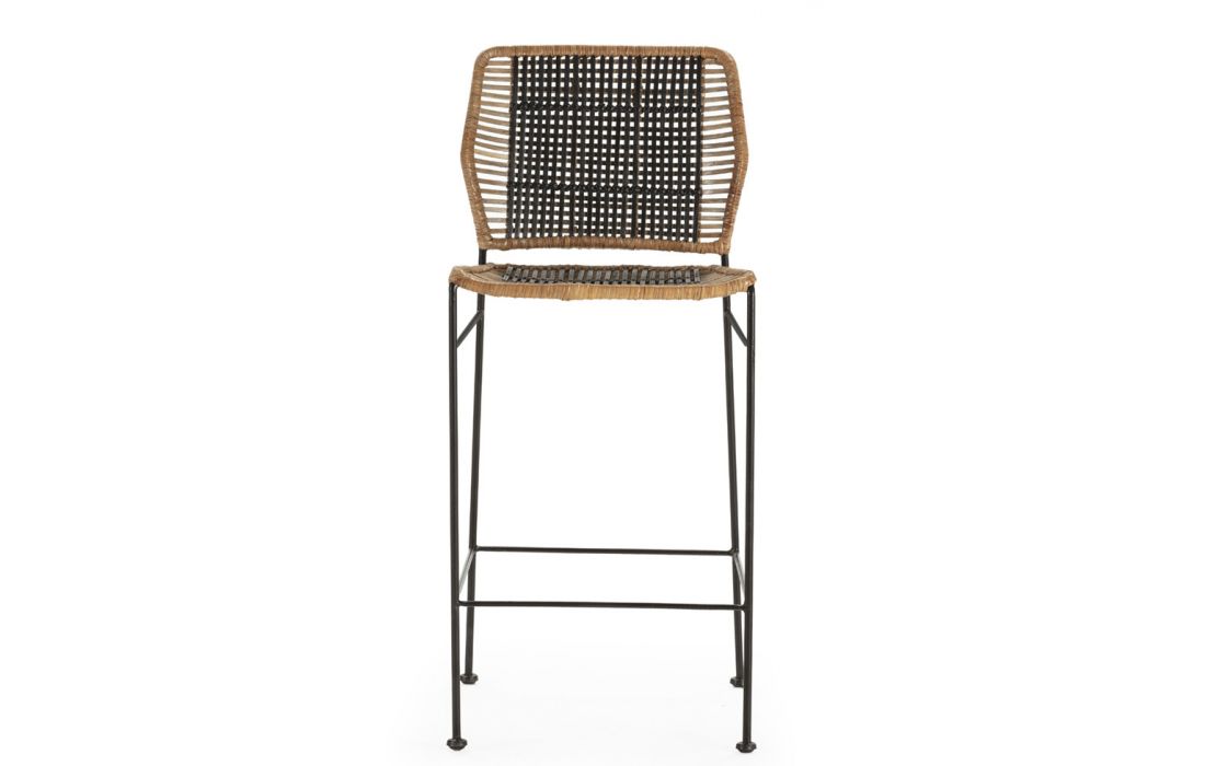 Bar stool with black metal structure, seat and back in black/natural rattan