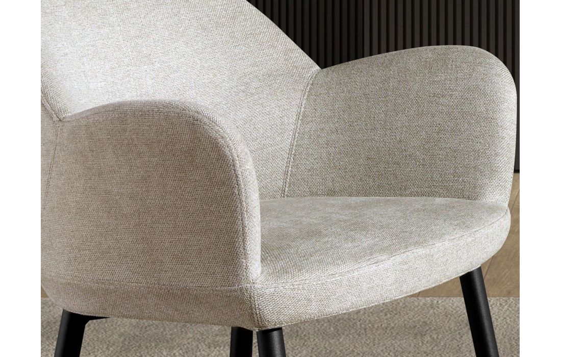 Modern design bench with armrests, seat and back upholstered in fabric and stainless steel legs painted in black epoxy, with an avant-garde but timeless styleRecipient :