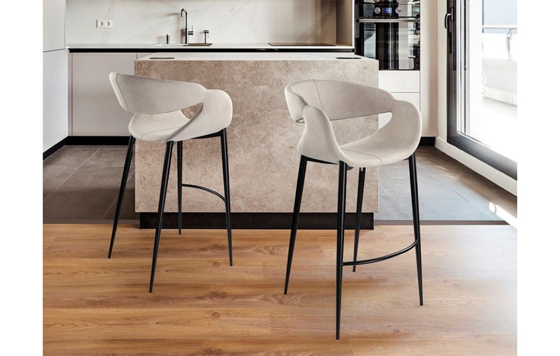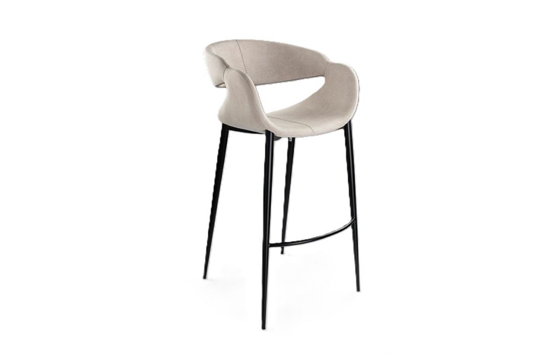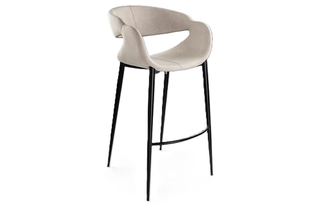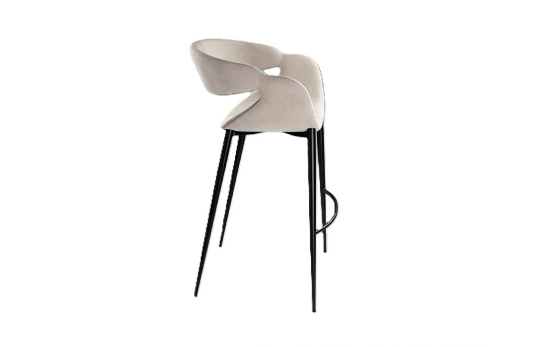 Bar stool upholstered in fabric with decorative stitching, metal legs in matte black finish with footrestRecipient :