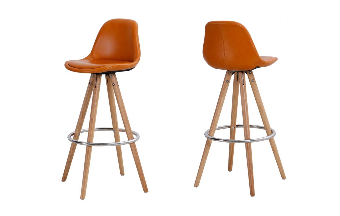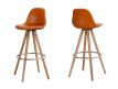 BarStool in solid oak solid wood with upholstered in genuine leather orange and feet with metal detail