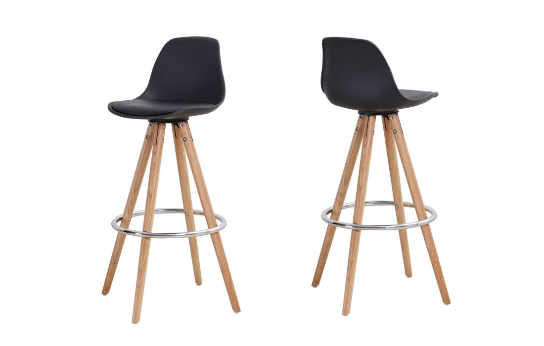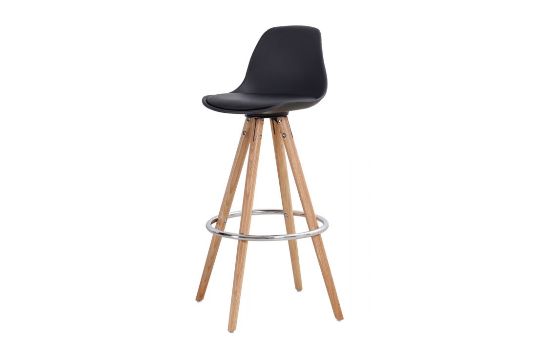 BarStool with black plastic frame with legs in oak solid wood with metal detail