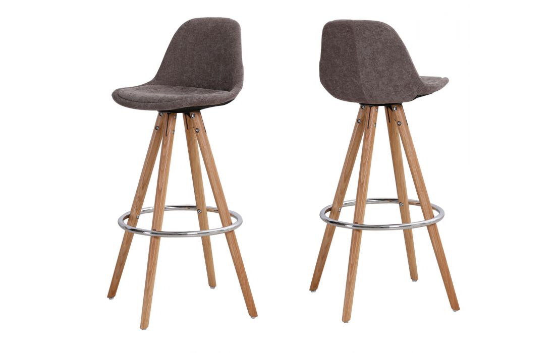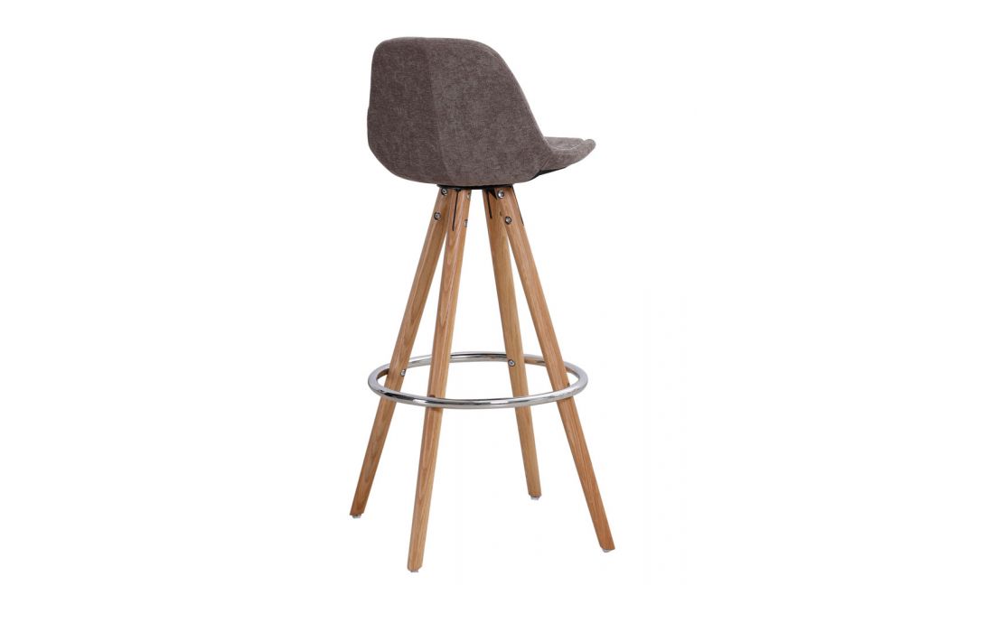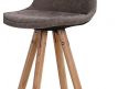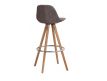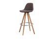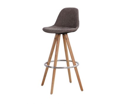 BarStool in oak solid wood with upholstered in gray fabric and legs with metal detail