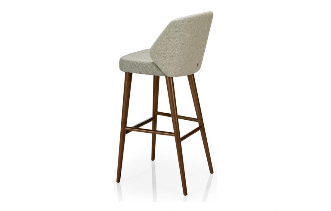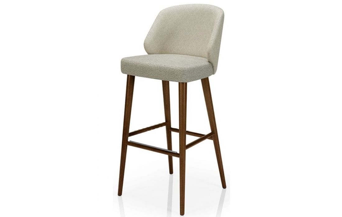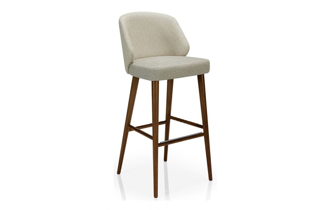 Bar Stool upholstered in fabric and leg structure in beech wood.