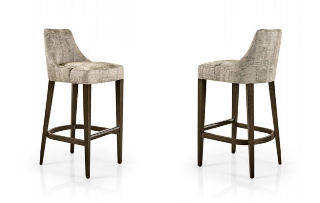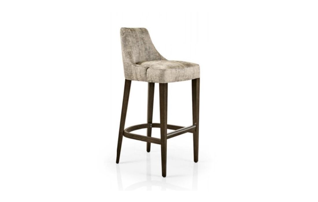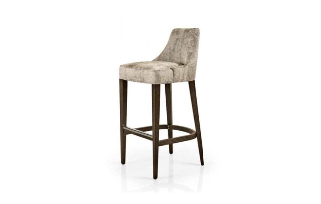 Bar Stool upholstered in fabric and leg structure in beech wood.