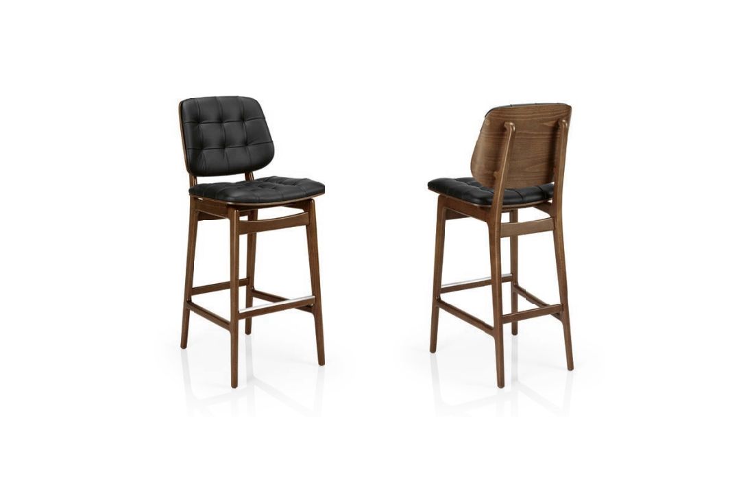 Bar Stool upholstered in synthetic leather and leg structure in beech wood.