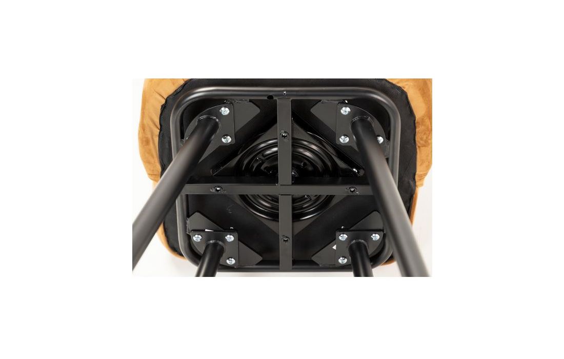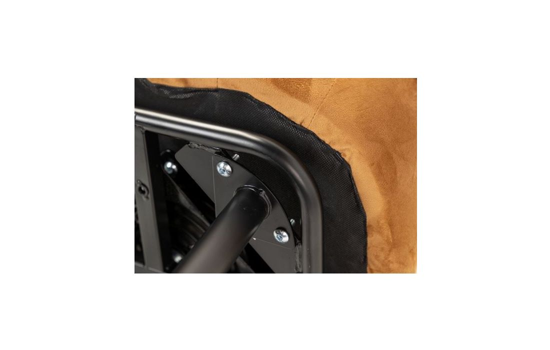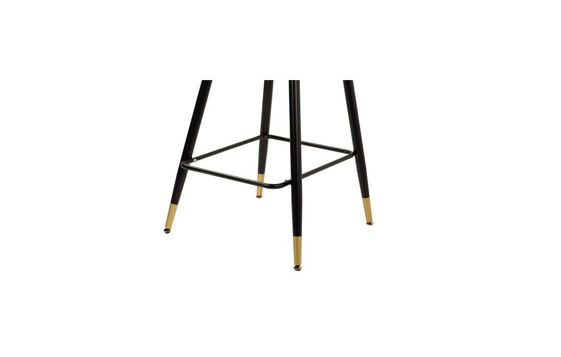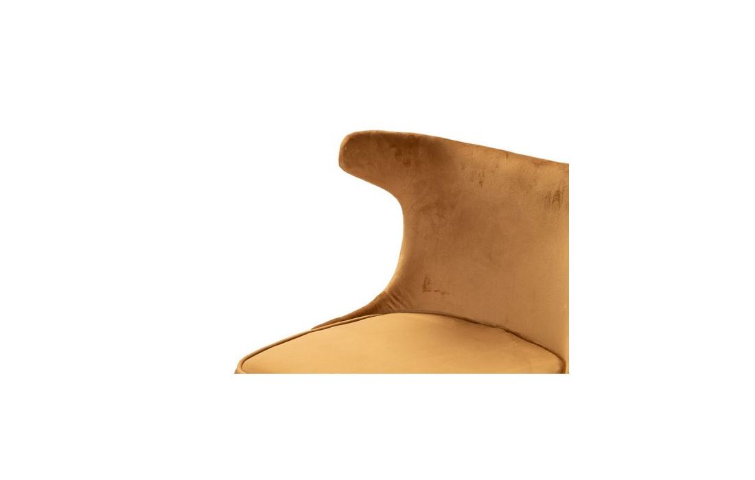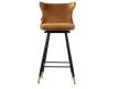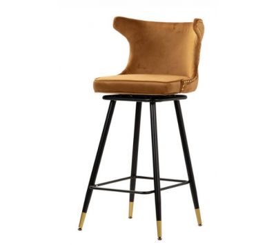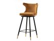 Barstool upholstered in mustard velvet fabric with black metal feet with golden detailsRecipient :