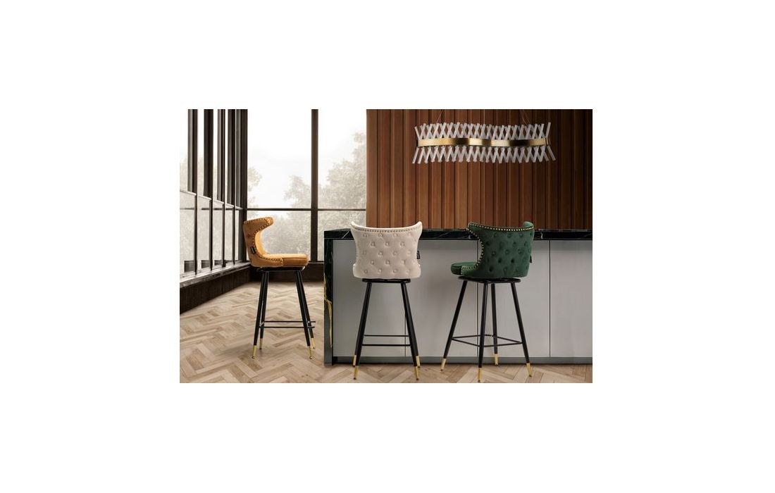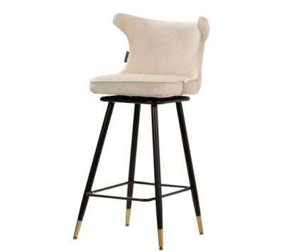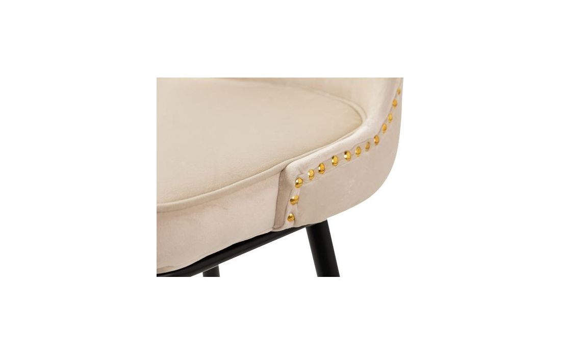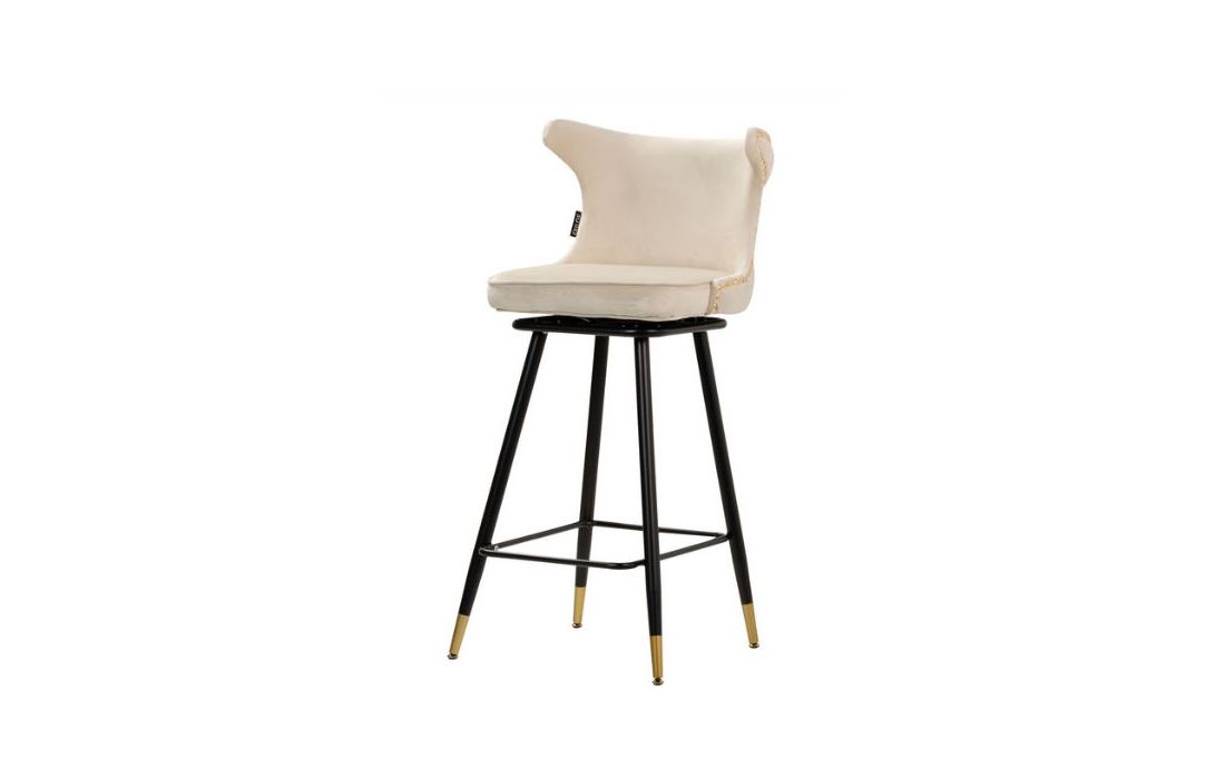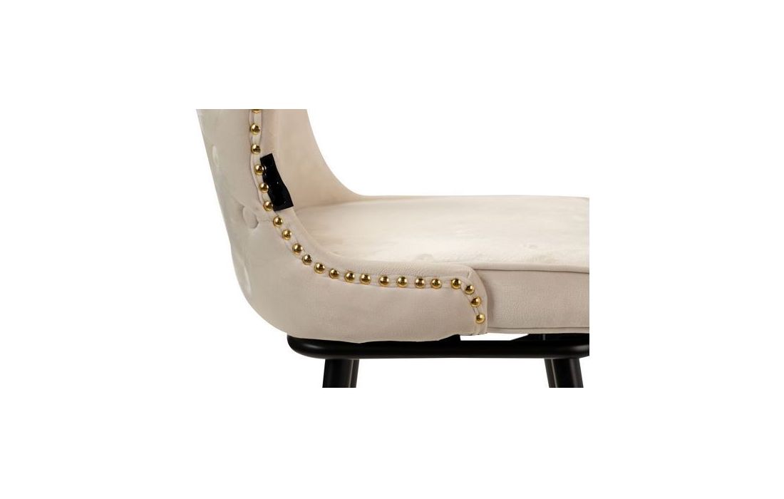 Bar stool upholstered in white velvet fabric with capitone details black metal feet with golden detailsRecipient :