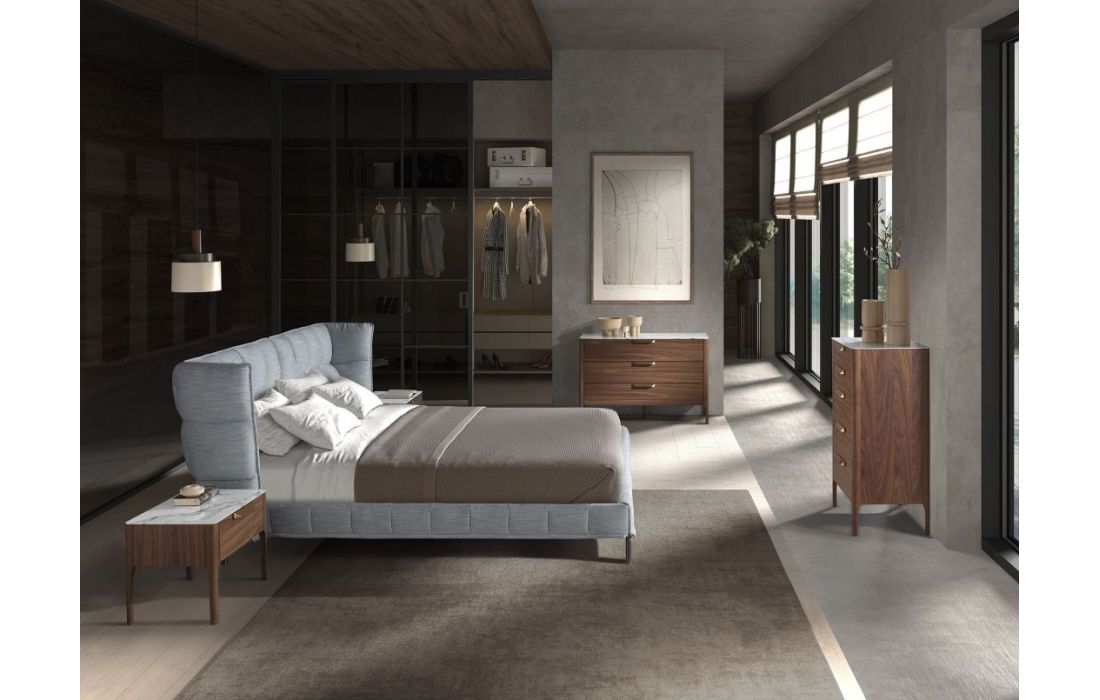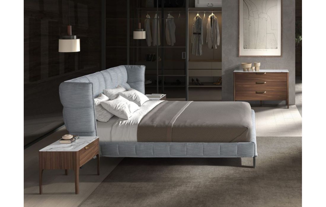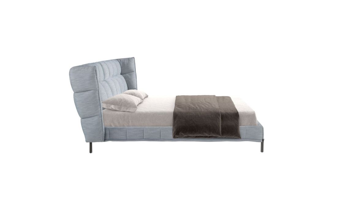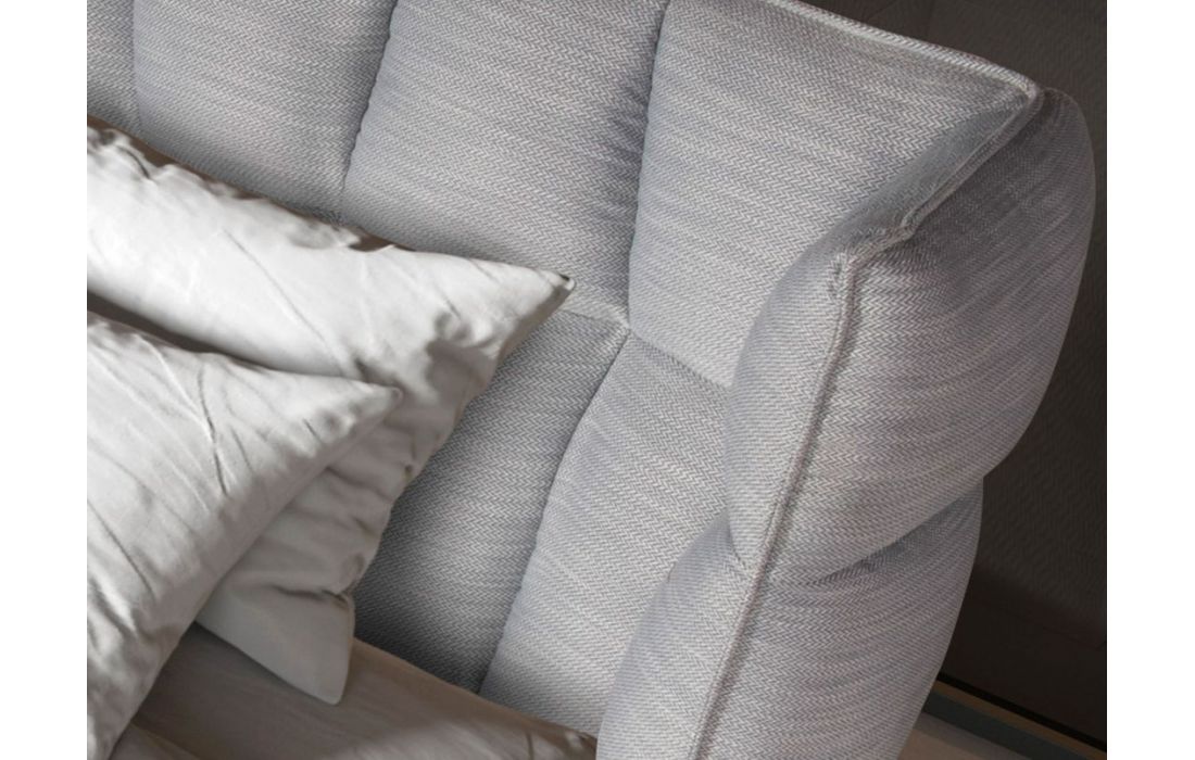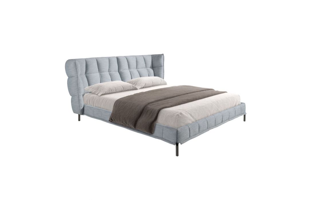 A modern bed with an original fabric headboard and frame and stainless steel legs, a key piece for your bedroom that will add an elegant and cozy style. The bed is compatible with a 180 x 200 cm mattressRecipient :