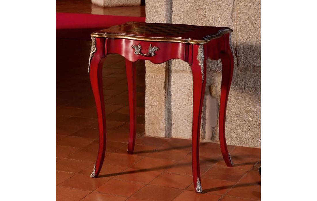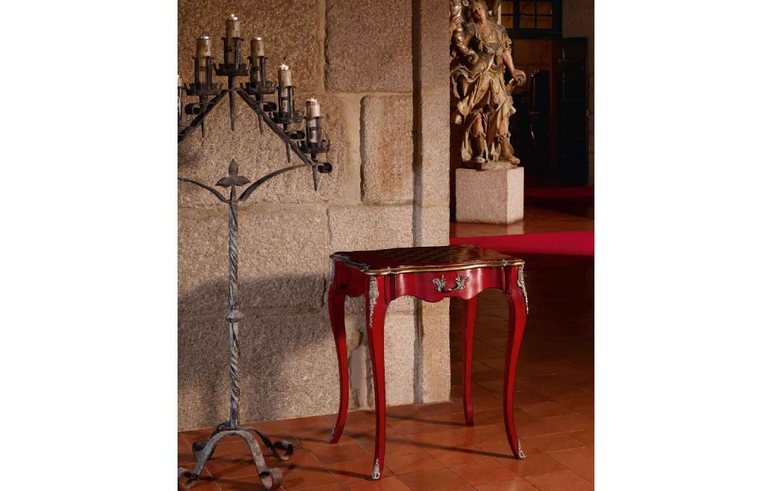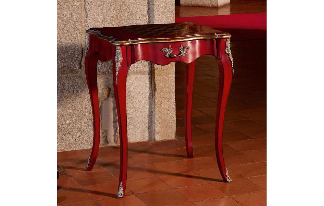 Bedside table, game detail on top, Provencal design with detail in gold leaf and with the possibility of several finishes.