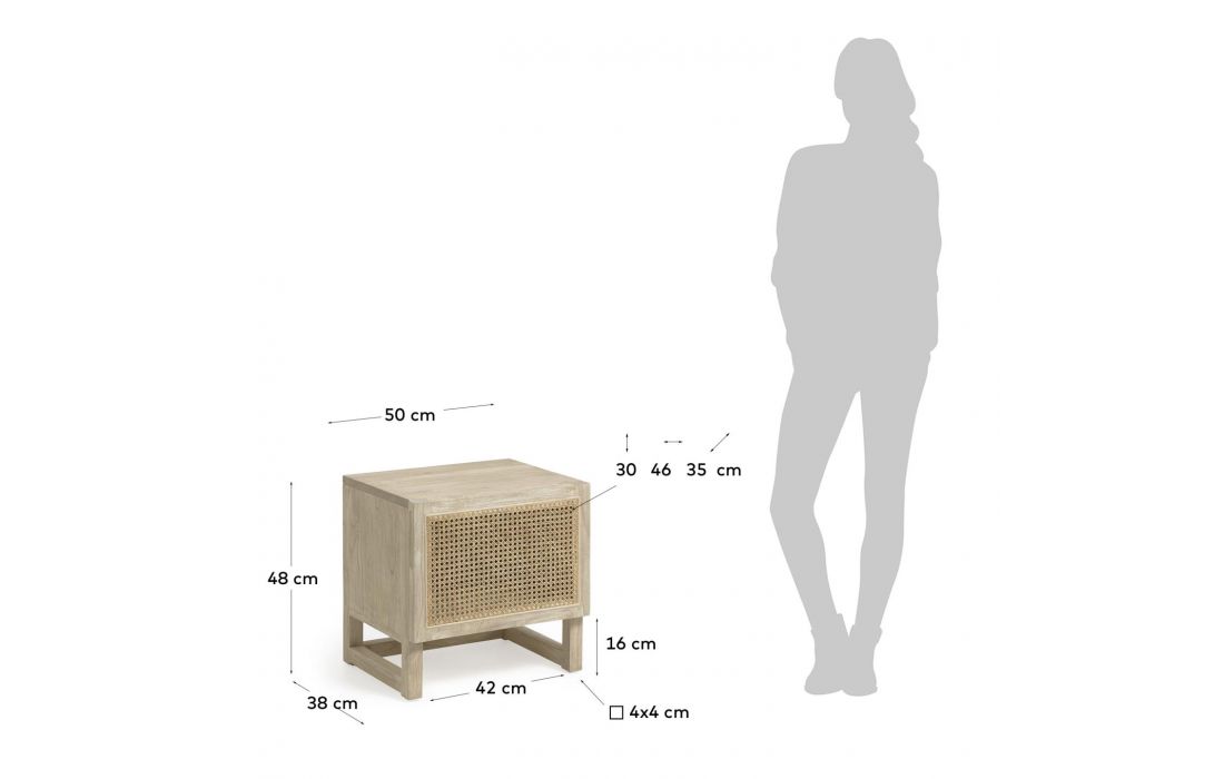Mindi solid wood bedside table and straw with 1 door.