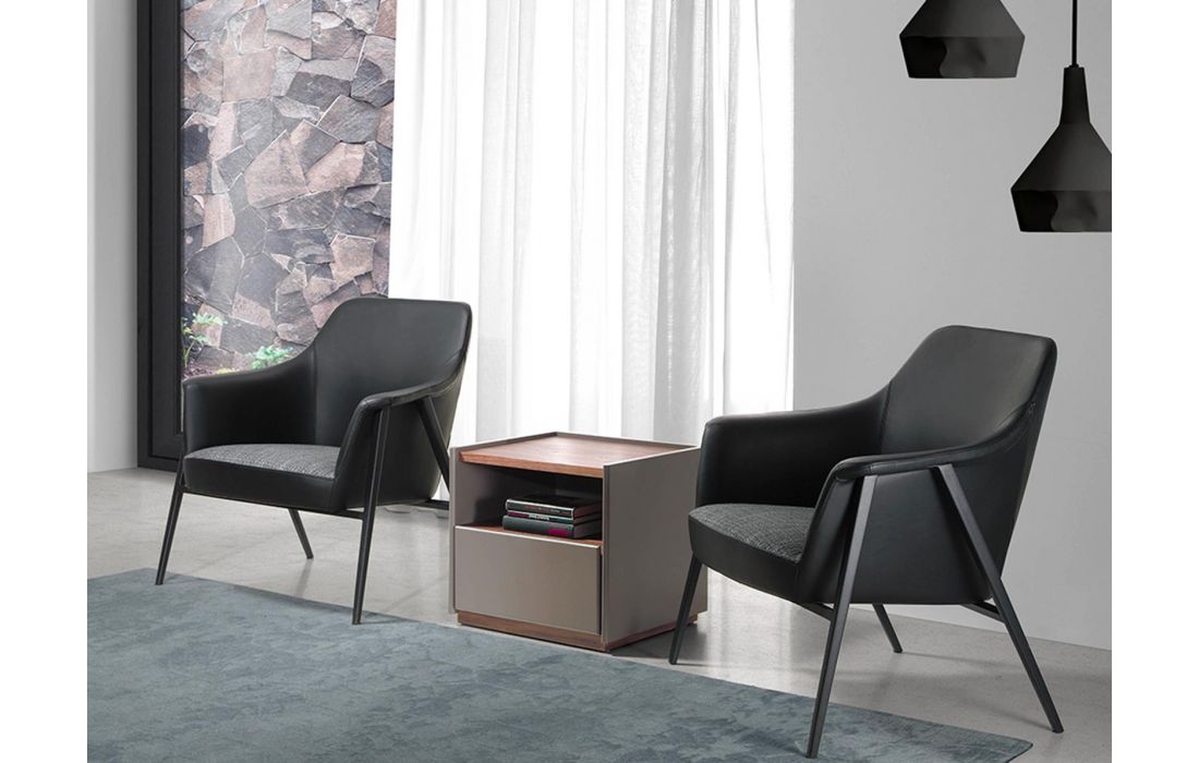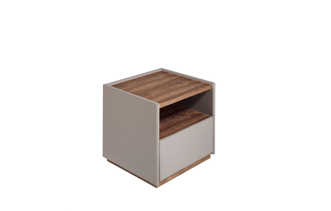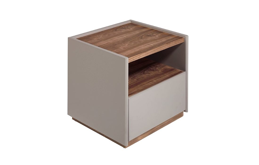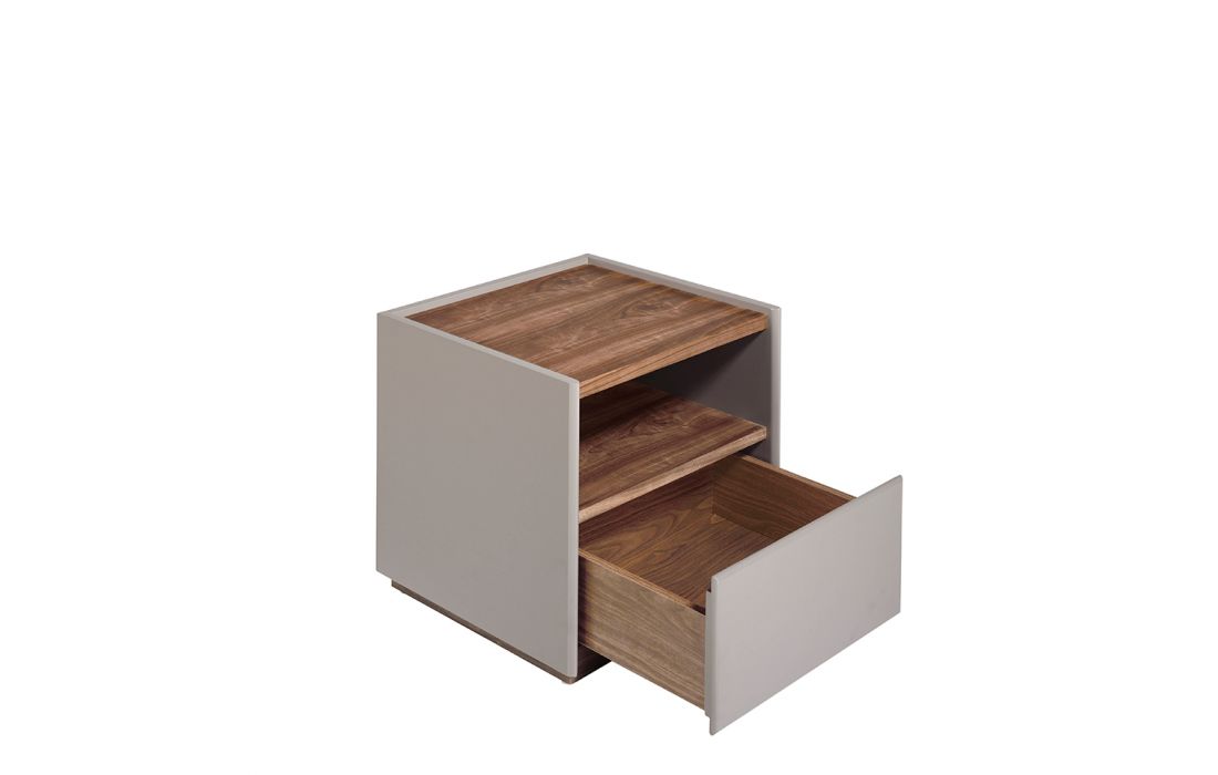 Bedside table with walnut structure and lacquered MDF with drawers.