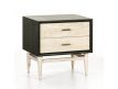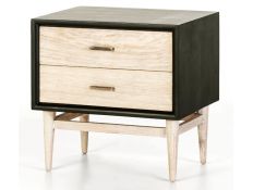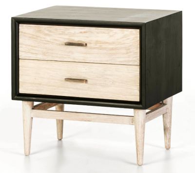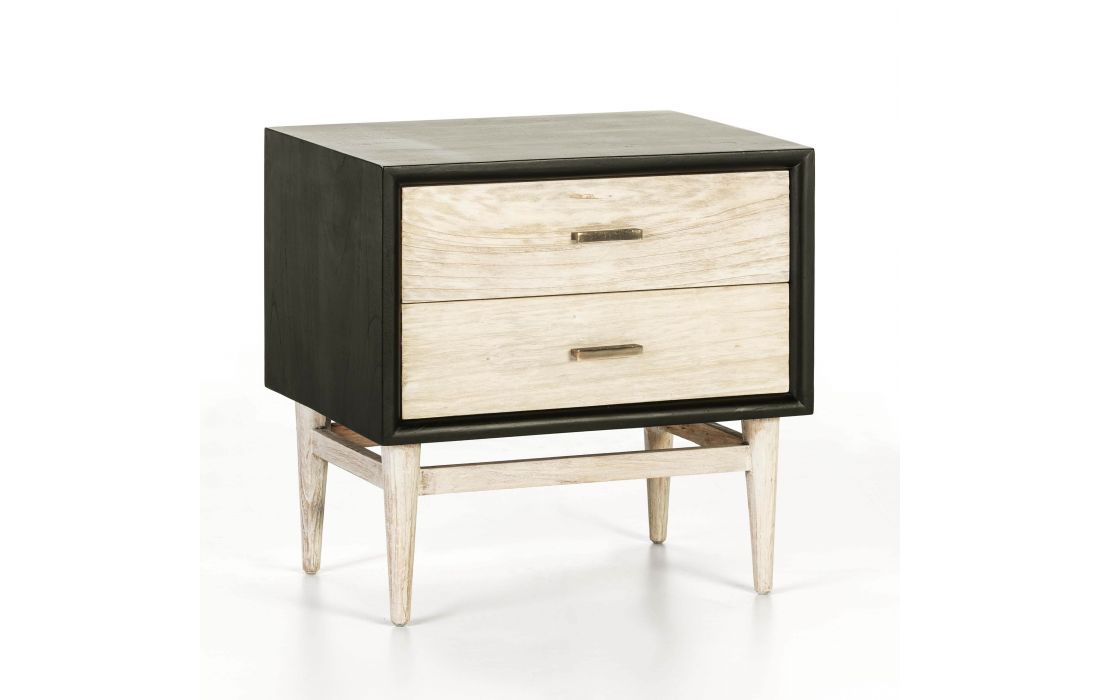 Bedside table in black wood, with two drawers/feet in wash white and with gold handles.