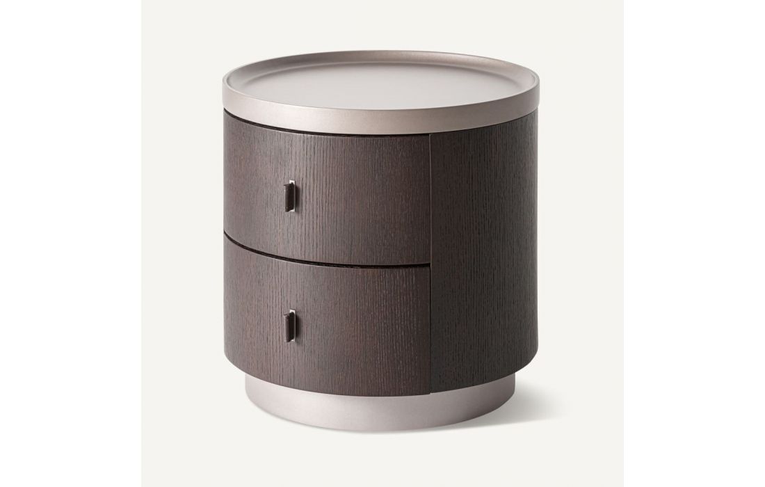 Art Deco style bedside table made of plywood and oak veneer in brown color