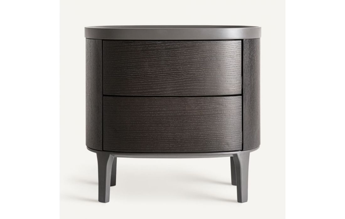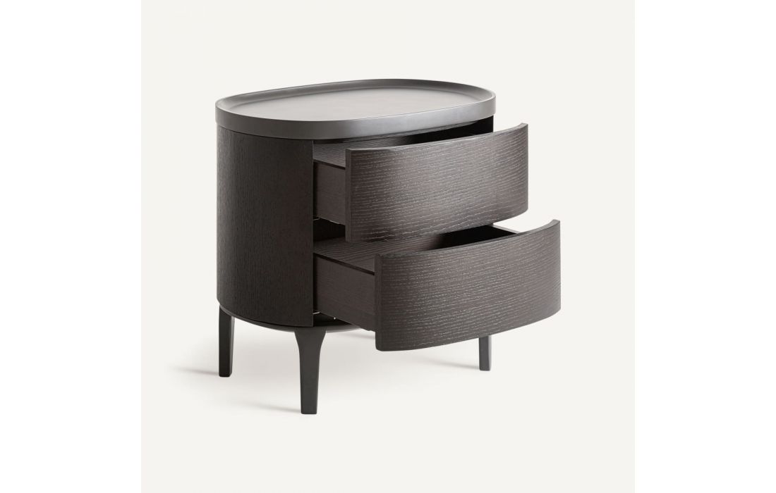 Art Deco style bedside table made of MDF combined with black oak veneer