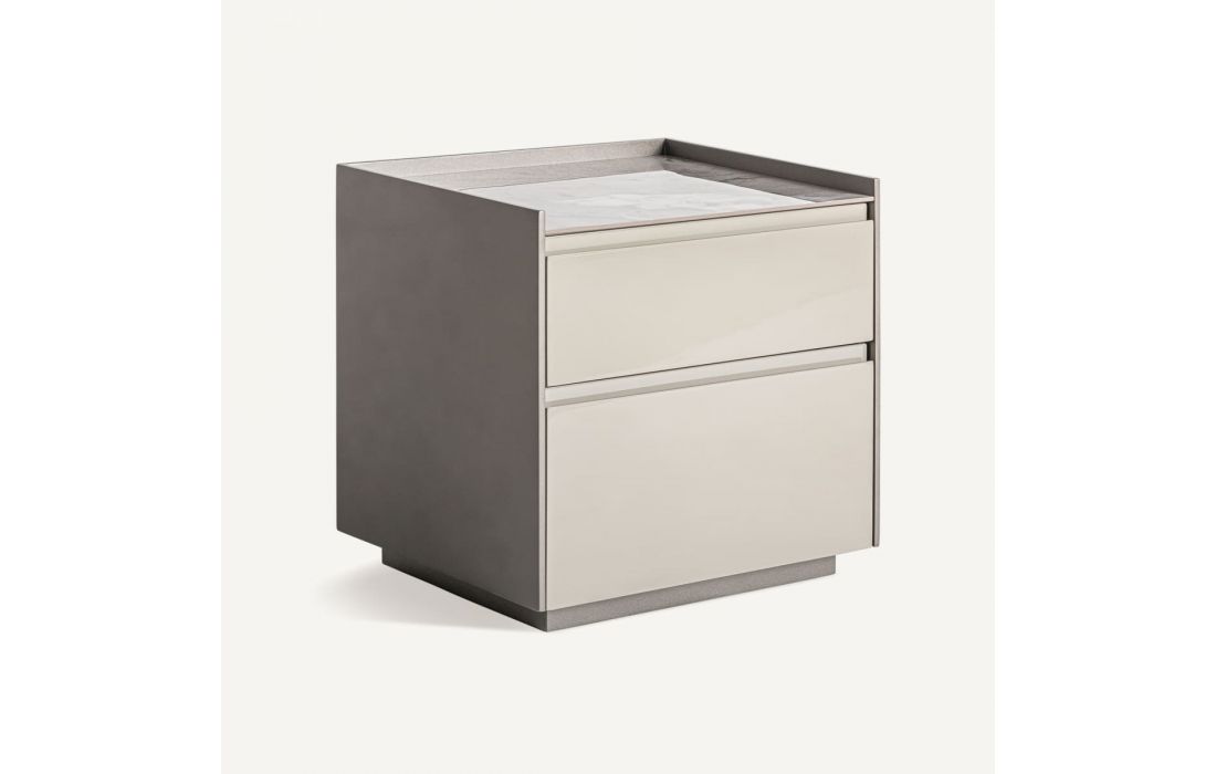 Art Deco style bedside table made of MDF and sintered stone in beige color