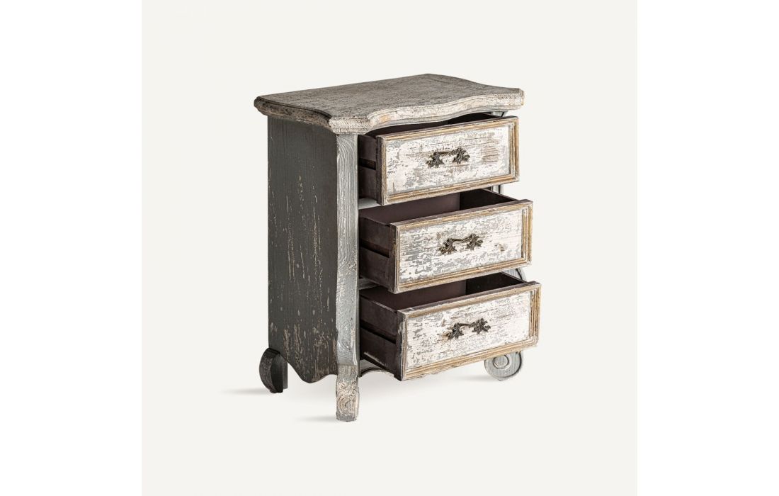Provencal style bedside table made of spruce wood in grey and cream colors