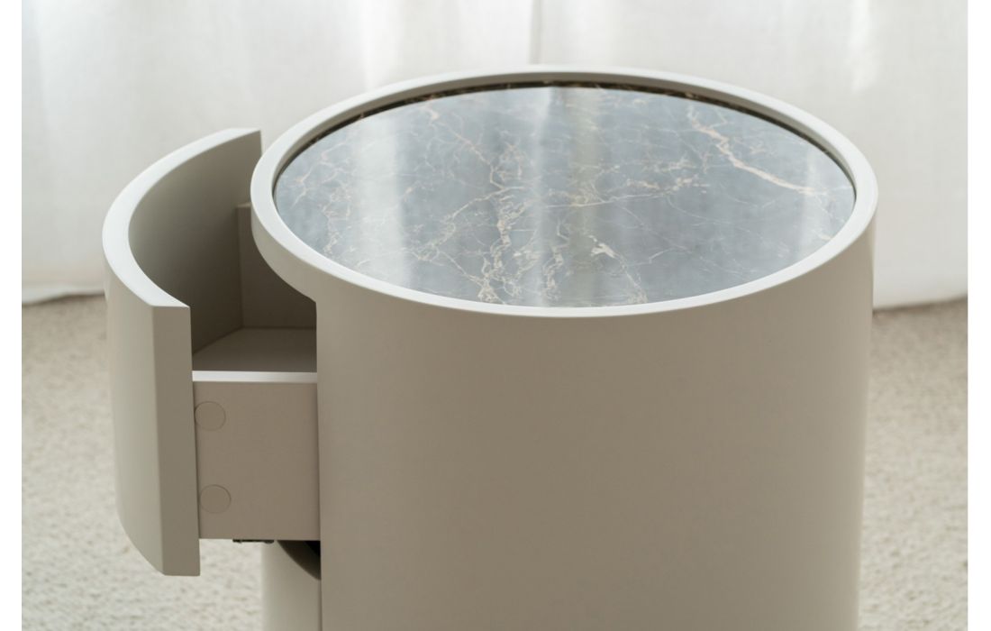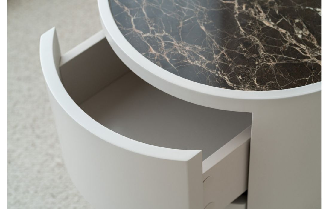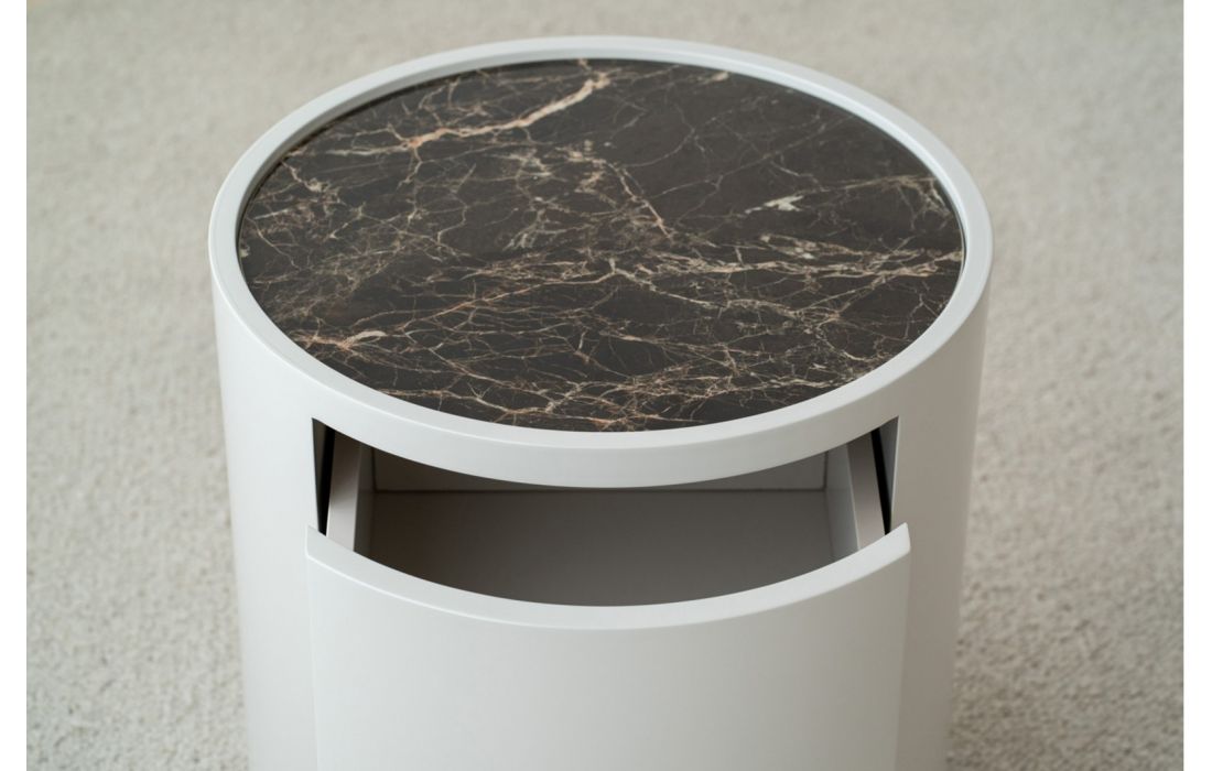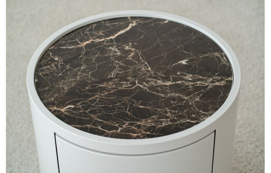 Bedside table made of ash wood and a ceramic top in brown and beige tonesRecipient :