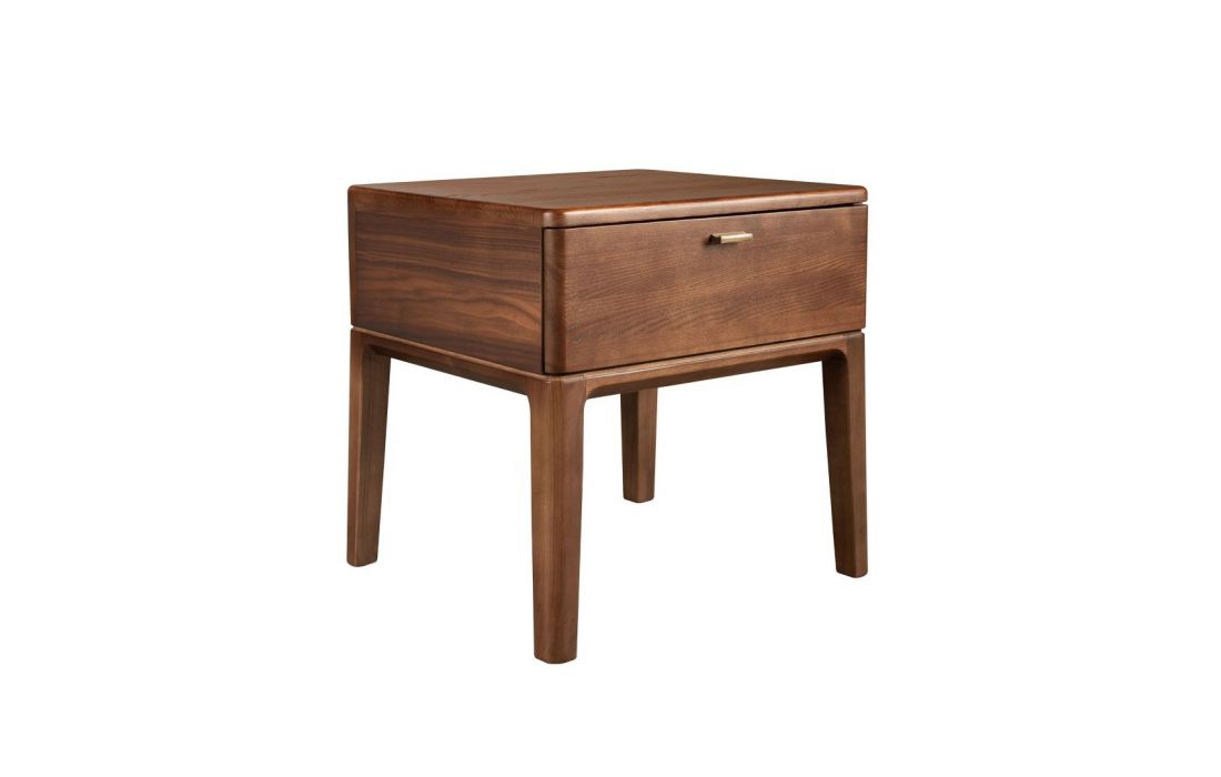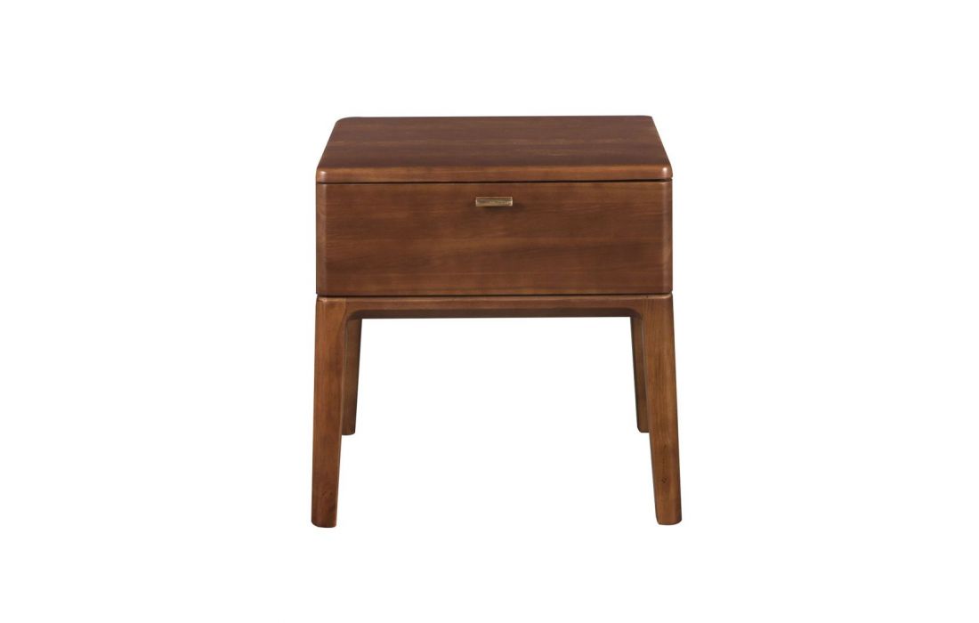 Modern bedside table with walnut-colored wooden structure and original walnut-colored legs, has ample storage space and a drawer with a flap opening and soft-closing systemRecipient :