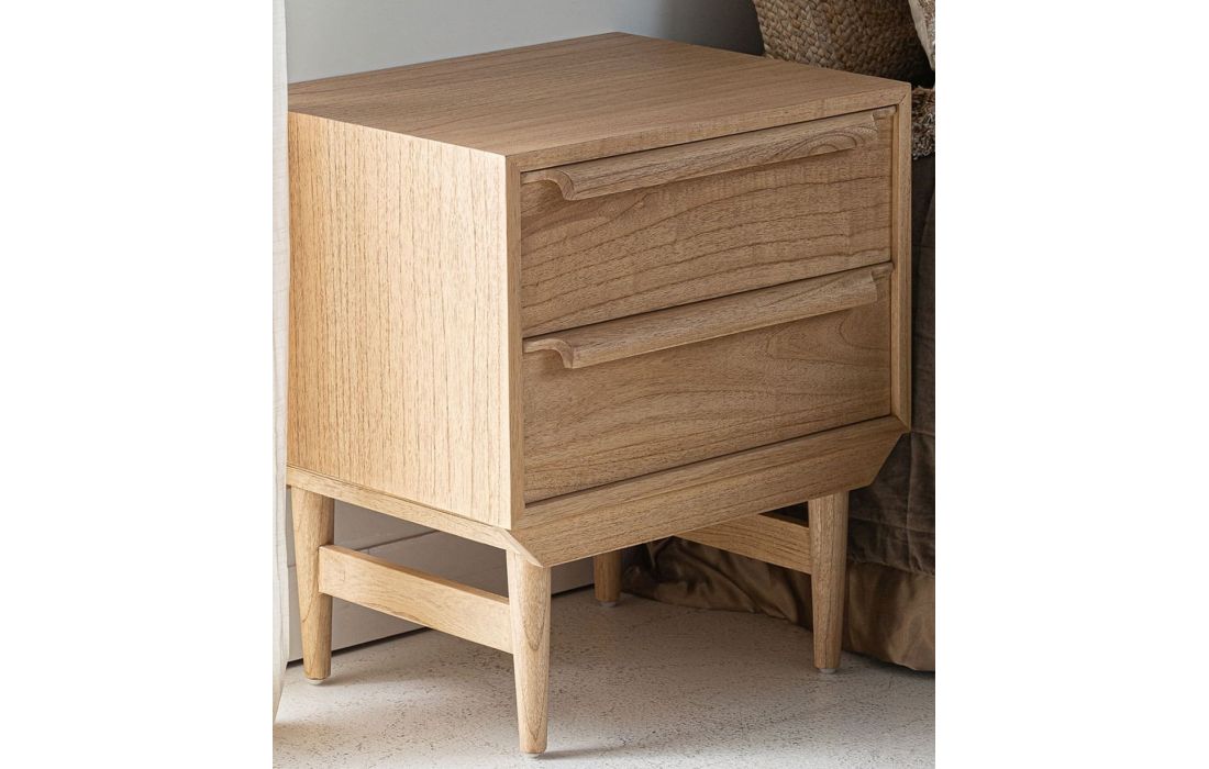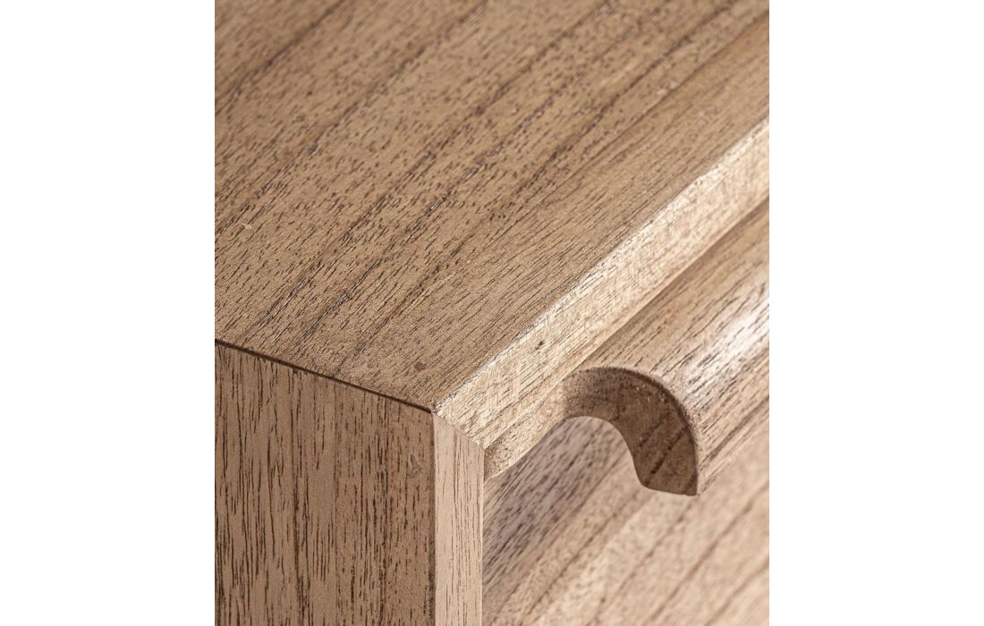 The NYRY bedside table in mindi wood combines minimalist Nordic design and functionality in a compact and versatile piece of furniture.Its finish highlights the natural texture of the wood.