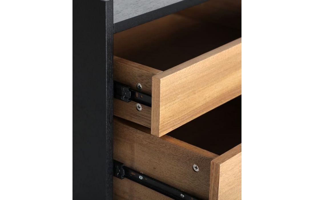 The BRUSSA bedside table is perfect for adding a contemporary touch to your bedroom.Made of high-quality MDF, it combines an elegant finish with details for a modern and functional design.