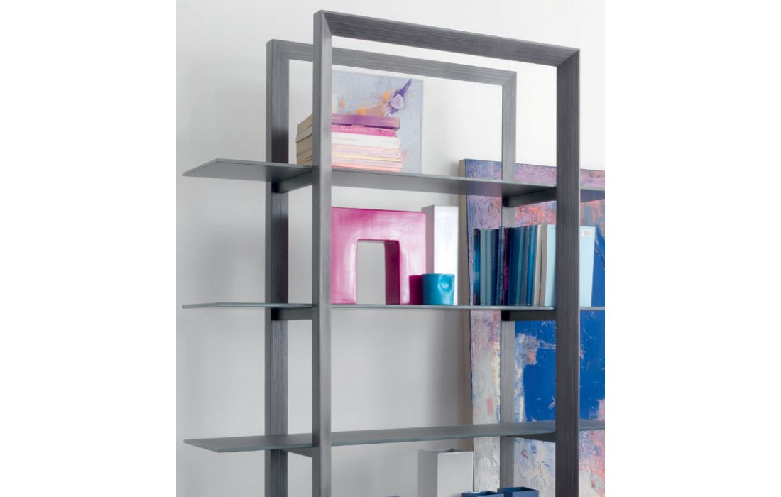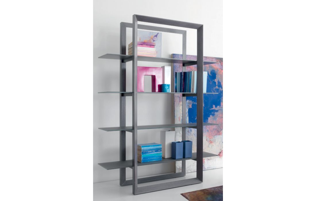 Bookseller modern structure with gray oak with 4 gray extraclaro glass shelves