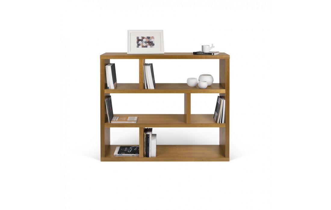 Bookseller with linear geometry, characteristic for its finish Mukali wood.