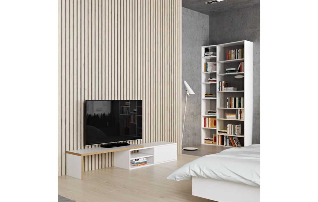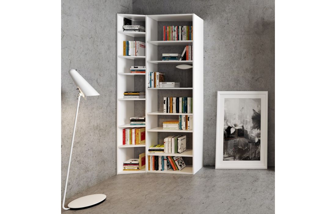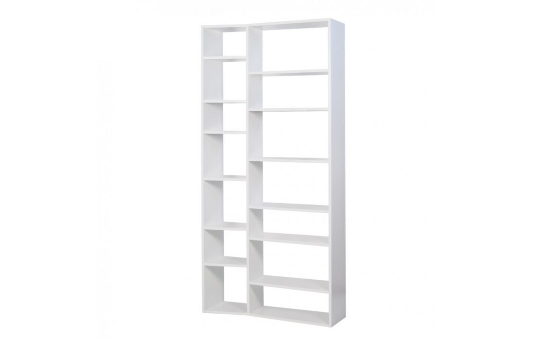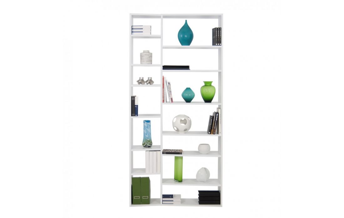 Bookseller with wavy profile shelves introduces rhythm to any room where it is placed.