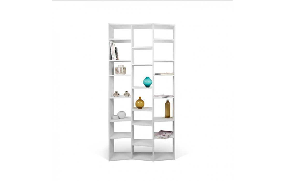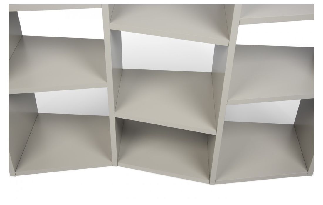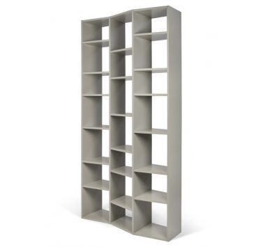 Bookseller with wavy profile shelves introduces rhythm to any room where it is placed.
