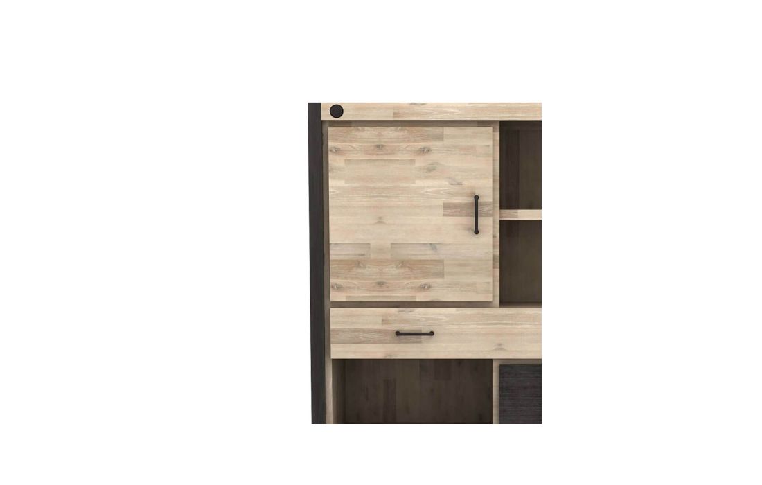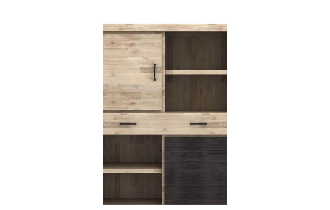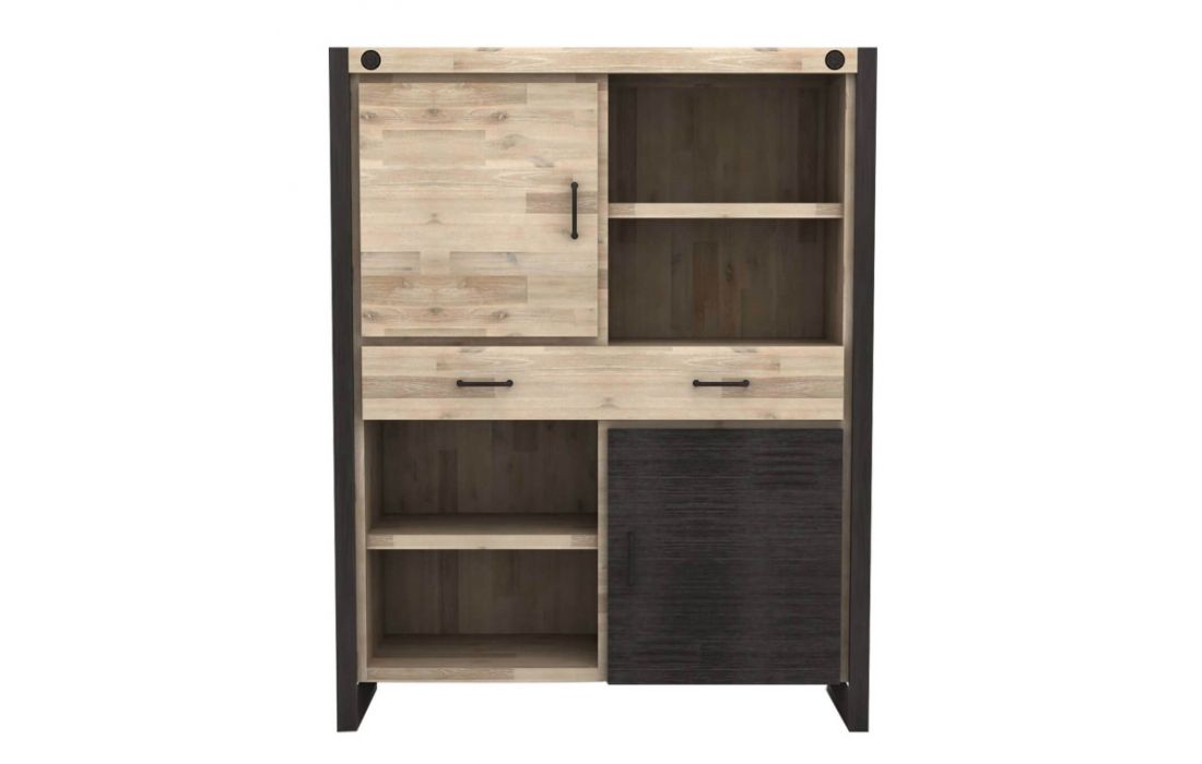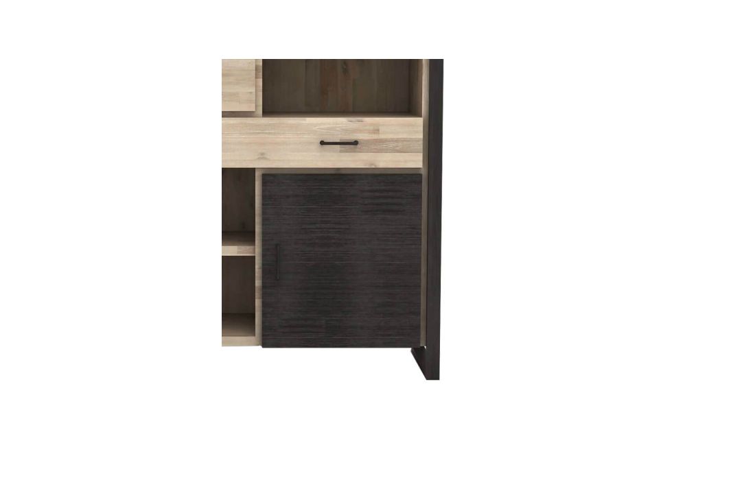 Bookseller with a central drawer and two doors, one in wood and one in metal