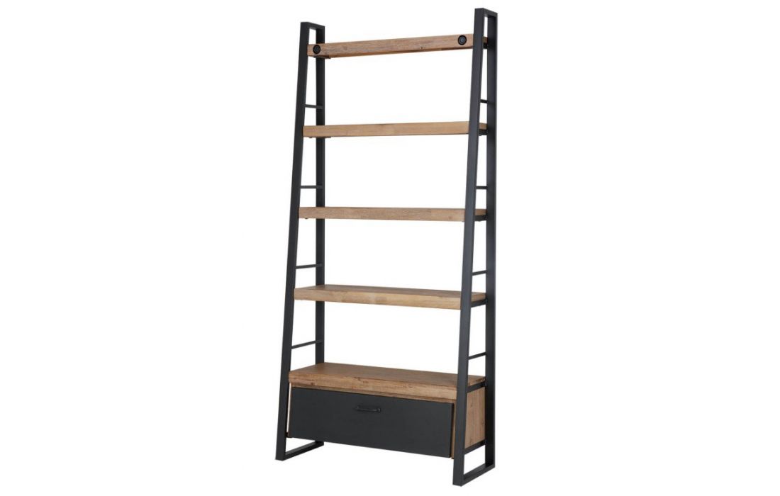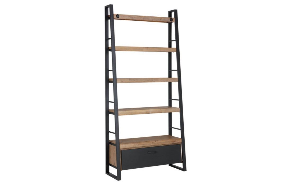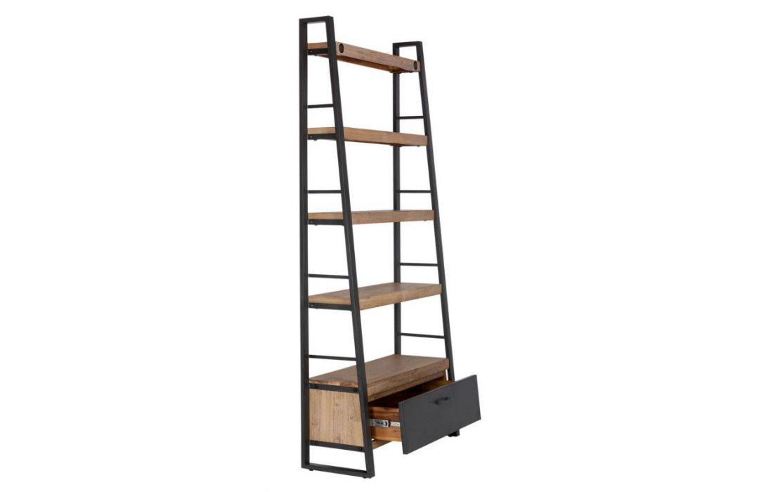 Bookseller one side drawer with metal and wooden shelves