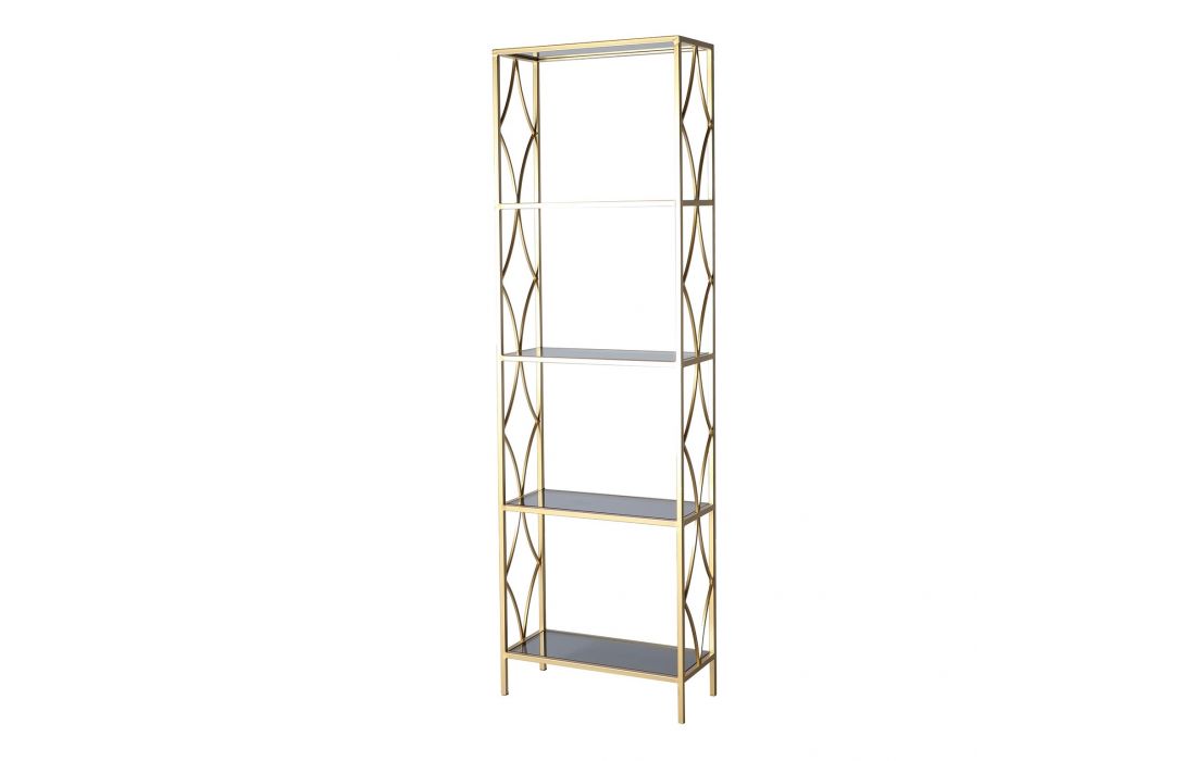 Bookseller with golden iron frame and 4 glass shelves