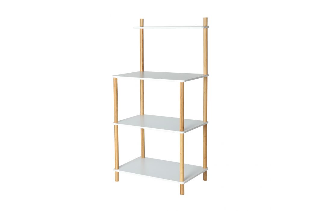 Bookseller made of MDF in white and a bamboo structure in natural color.
