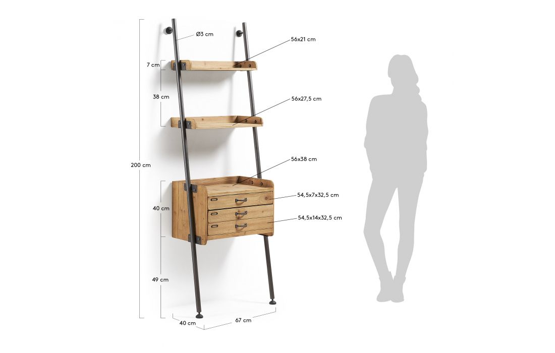 Bookcase with drawers in solid fir wood