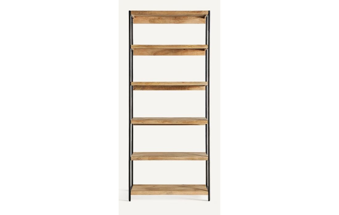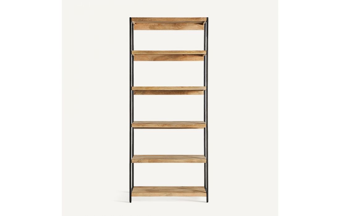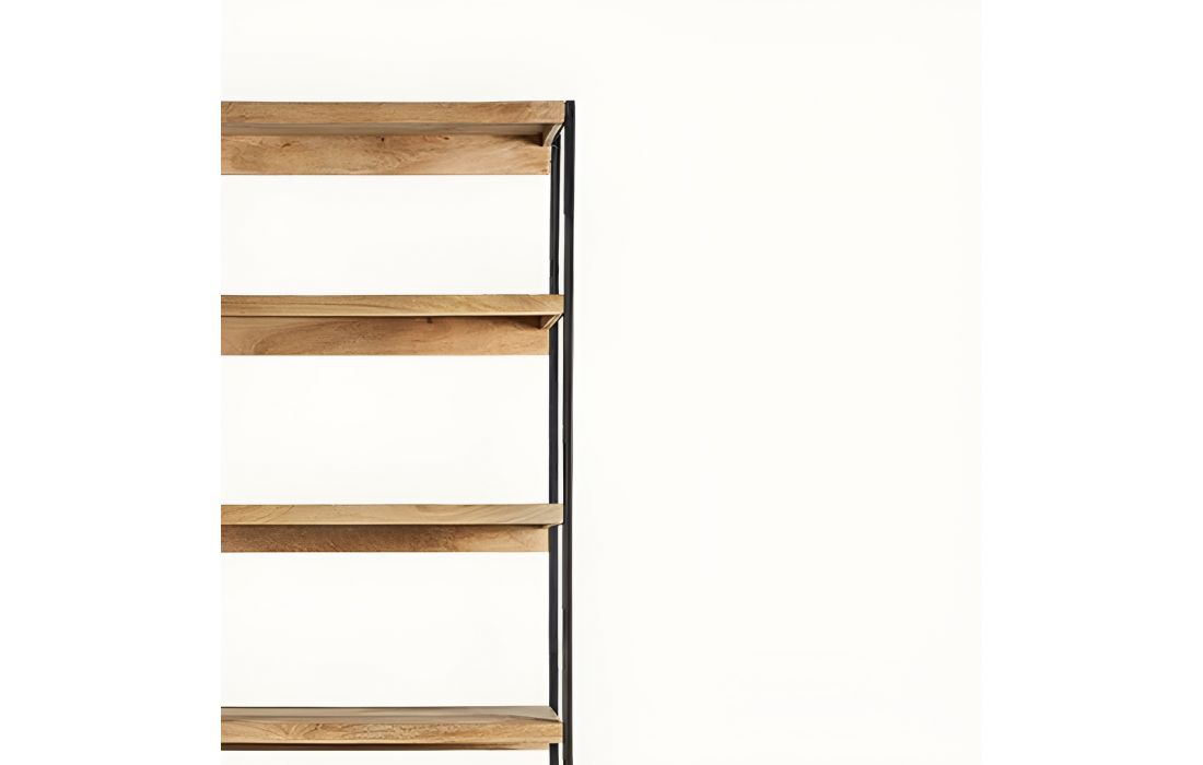 Bookcase in natural mango wood with iron feet