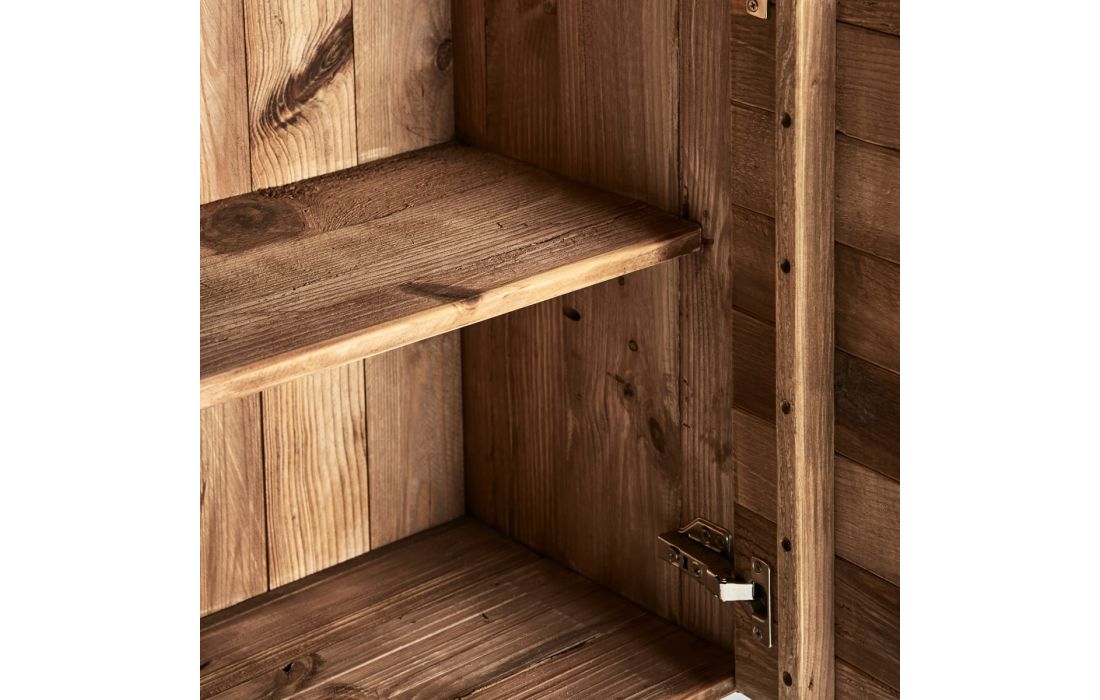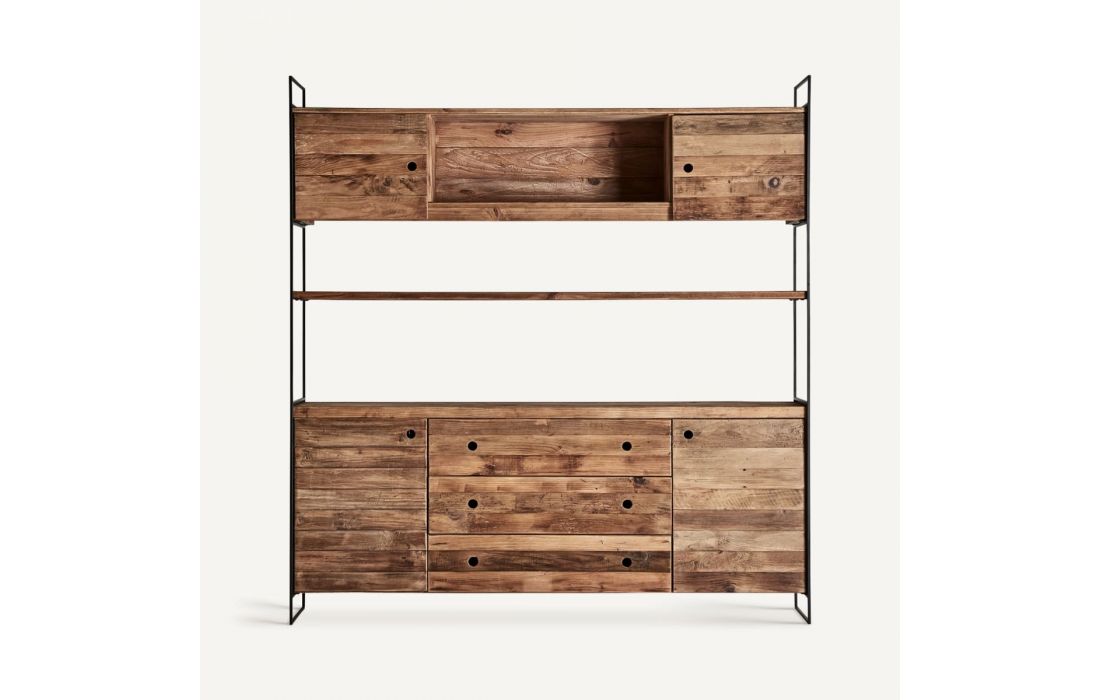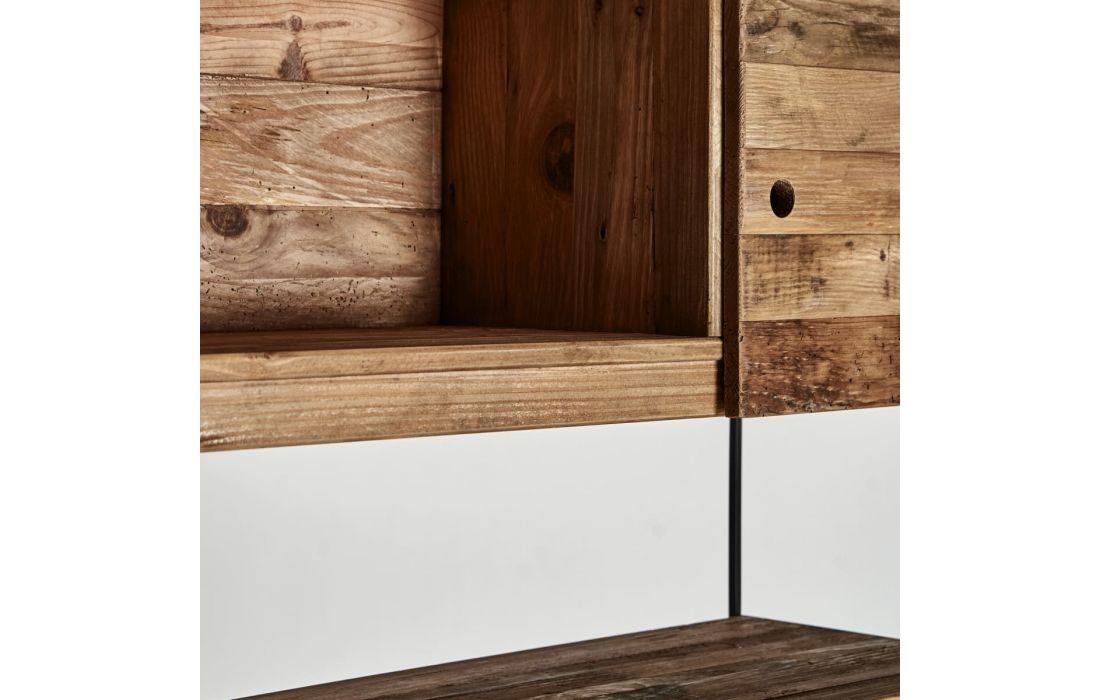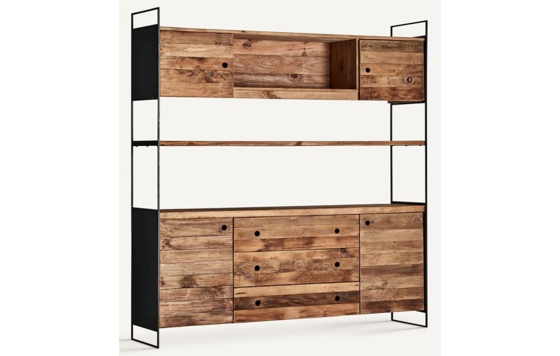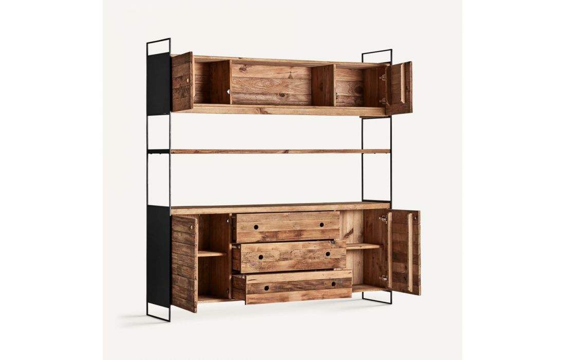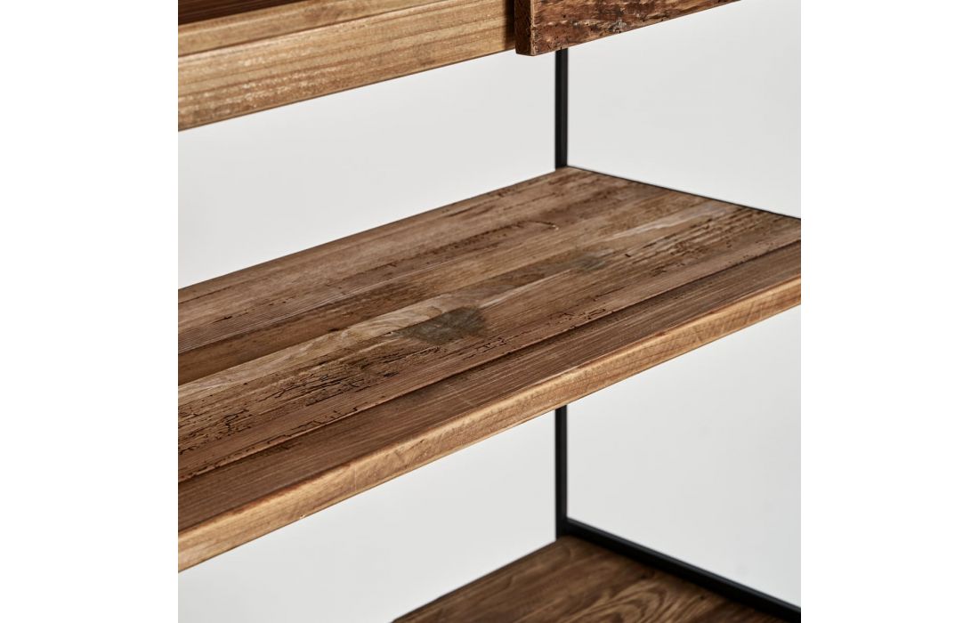 Bookcase in pine wood combined with oak wood with iron feet.