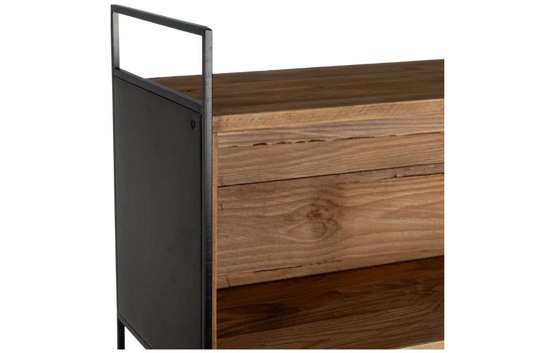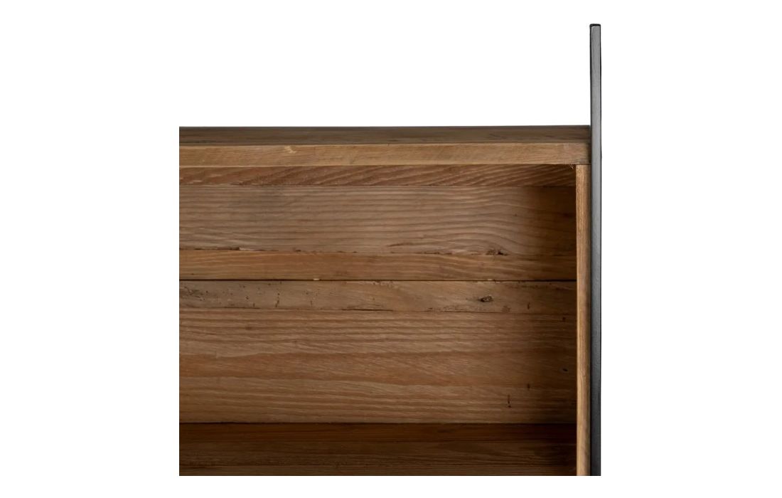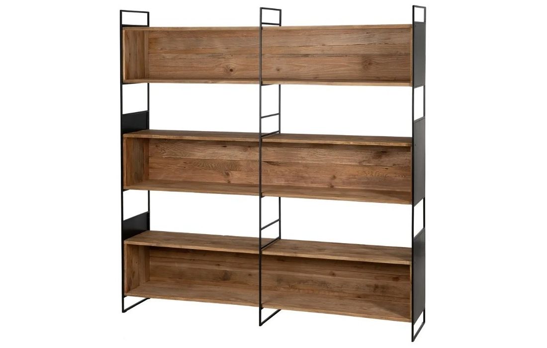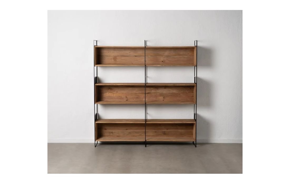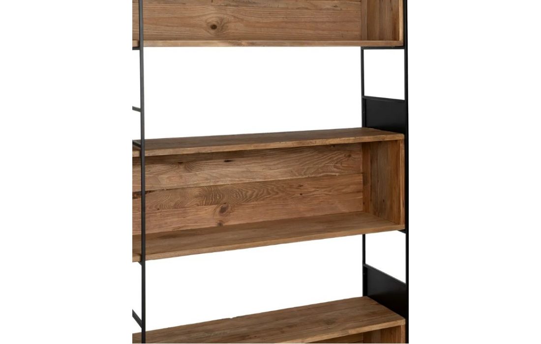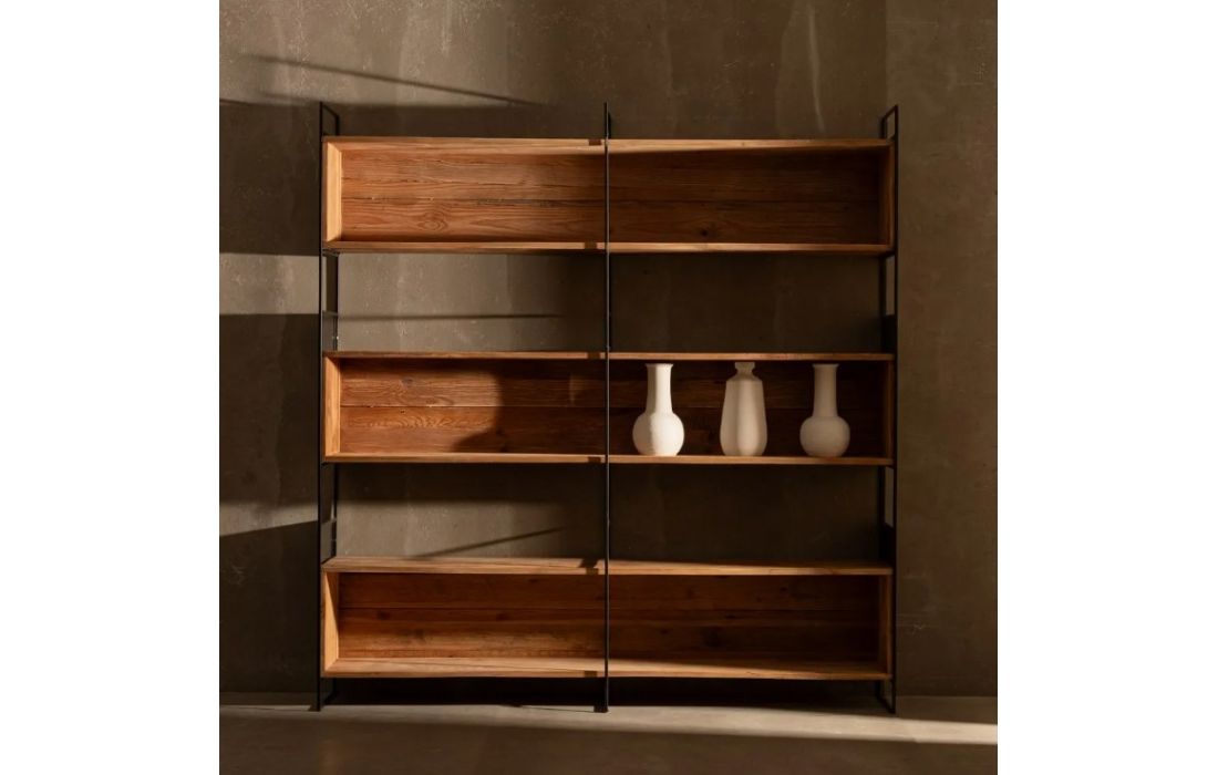Bookcase with structure in recycled pine wood and iron.