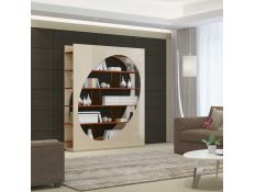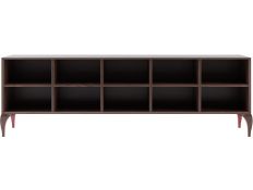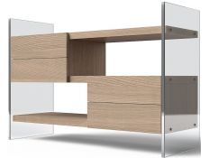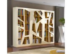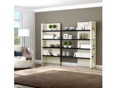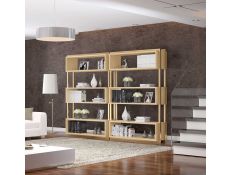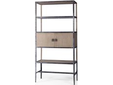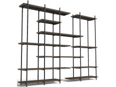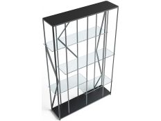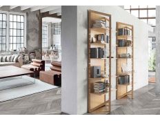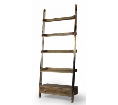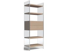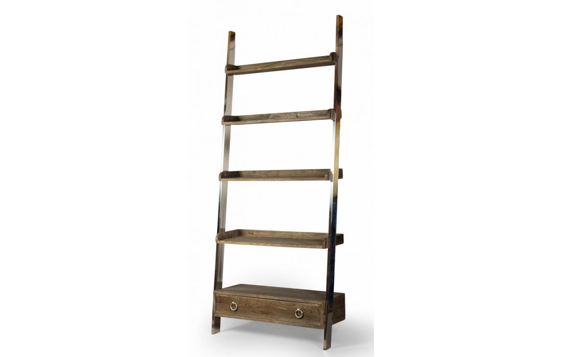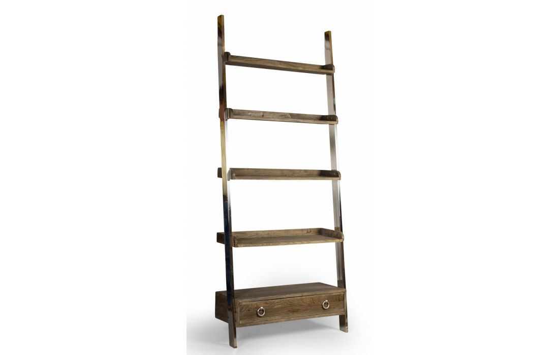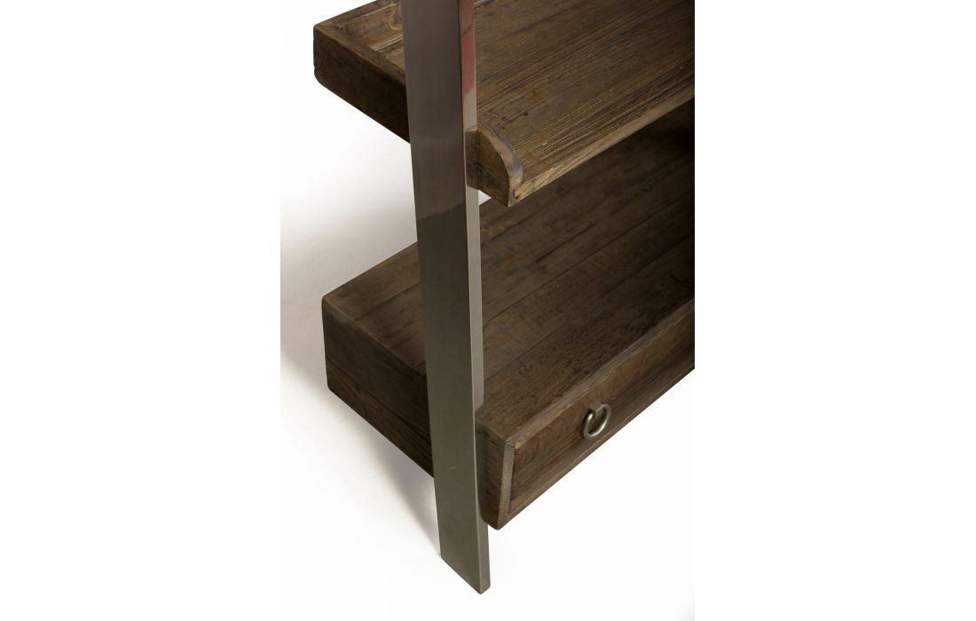 Bookstore with structure in stainless steel, 4 shelves and 1 drawer in recycled elm wood.