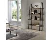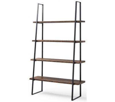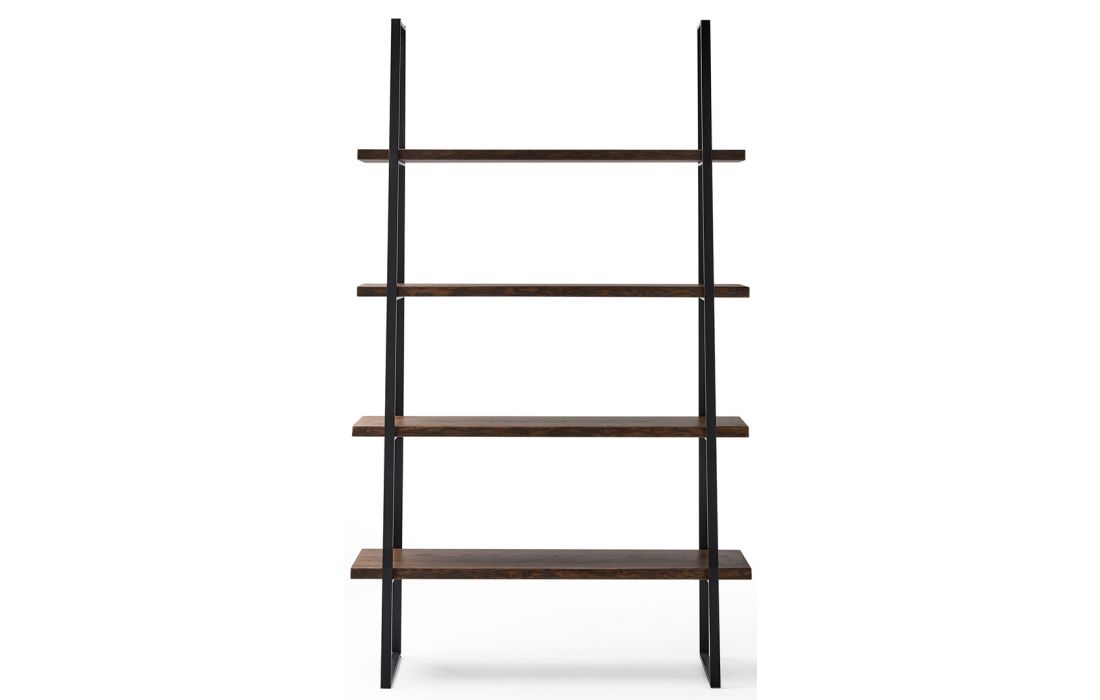Bookcase in ash wood masonry with 3 types of finish, black metal frame.