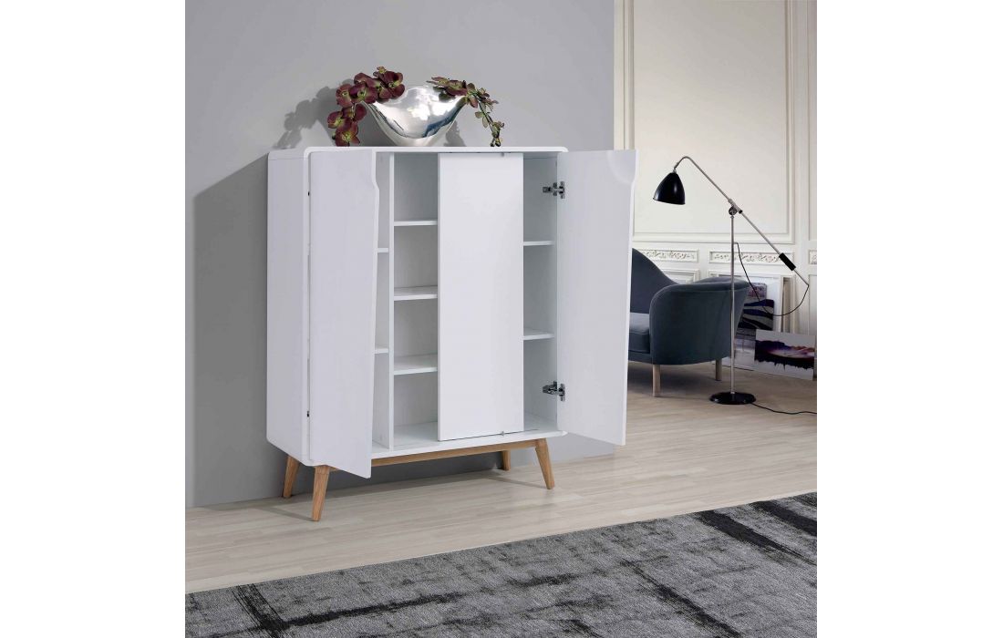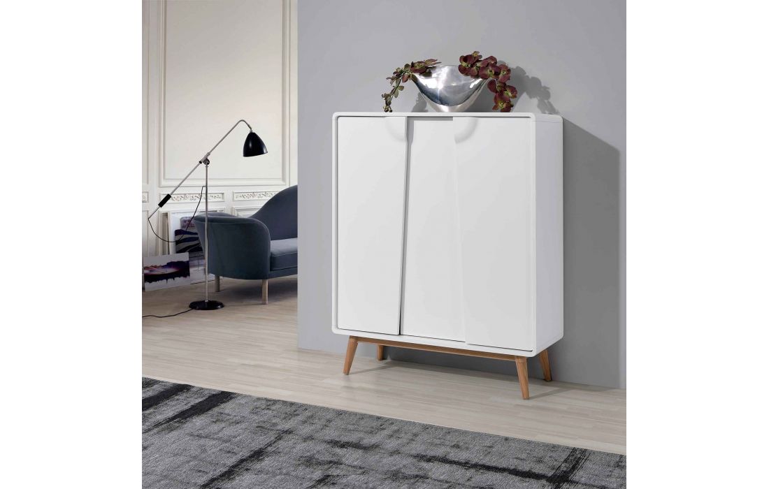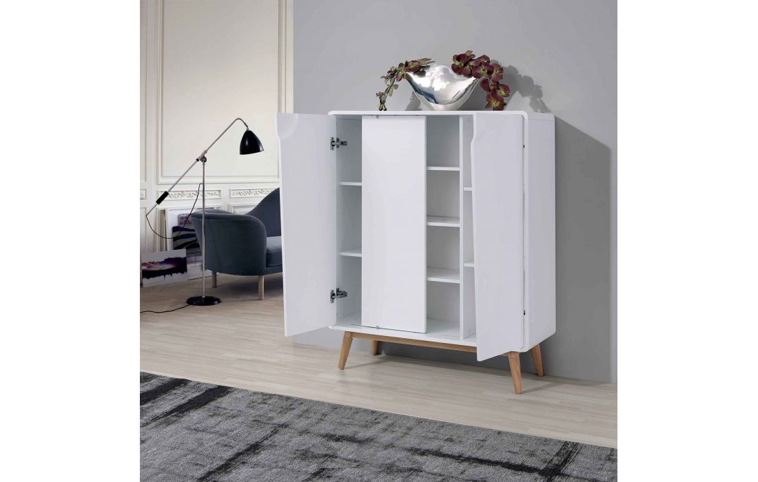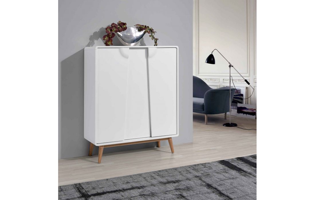 Mobile bar 2 doors + 1 run with wood feet, white lacquered