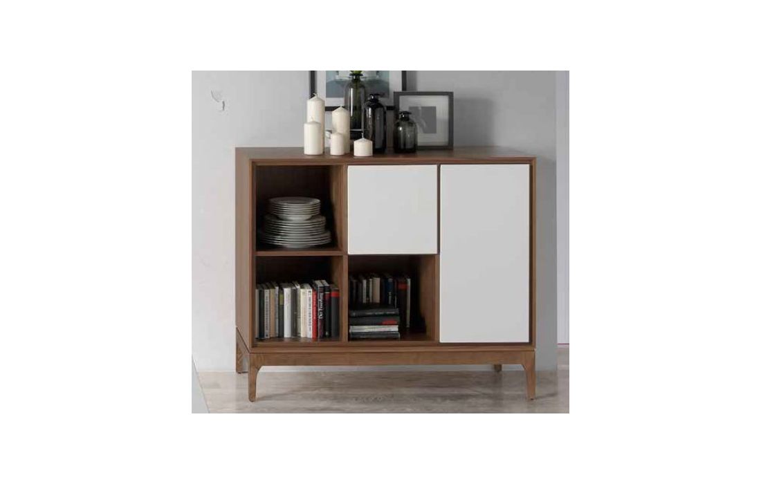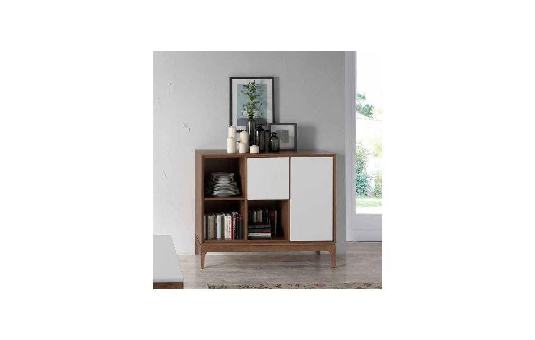 Mobile High with 3 doors and 3 shelves, walnut structure with door fronts in white MDF.