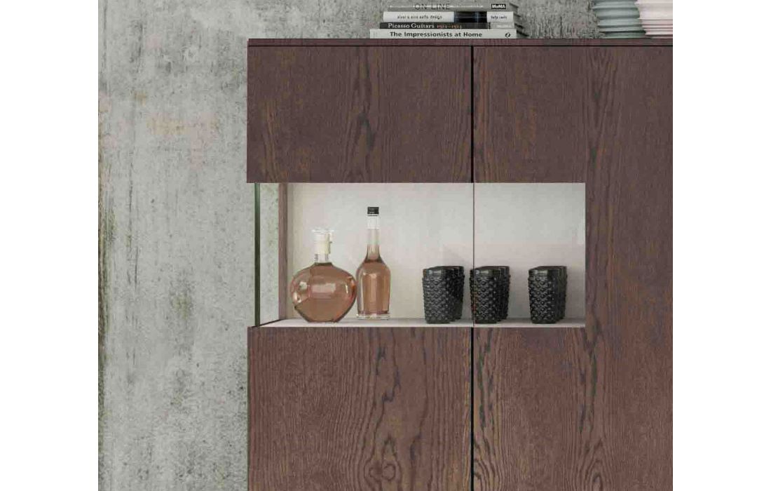 Cabinet in mdf structure and wooden sheet composed of 3 doors and 1 interior drawer with "Tic-Tac" opening.Recipient :