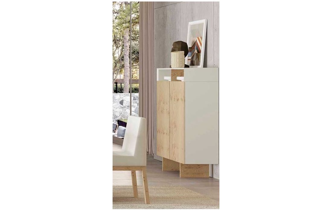 Cabinet in mdf structure and wooden sheet composed by 2 Doors and 1 interior Drawer.Recipient :