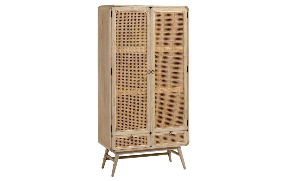 Mobile High made of solid mindi wood with aged effect, handmade wicker doors.Recipient :
