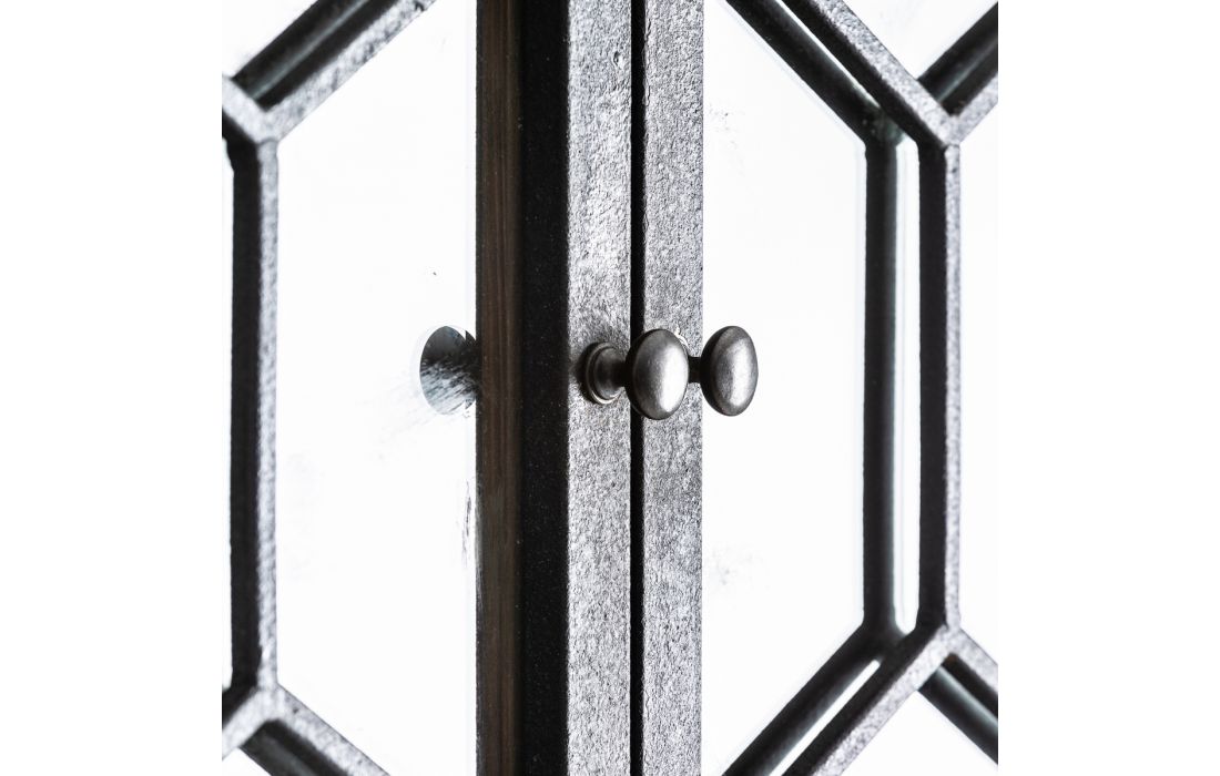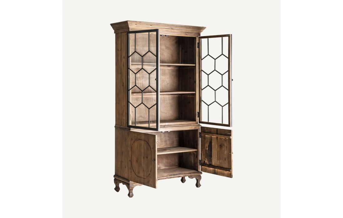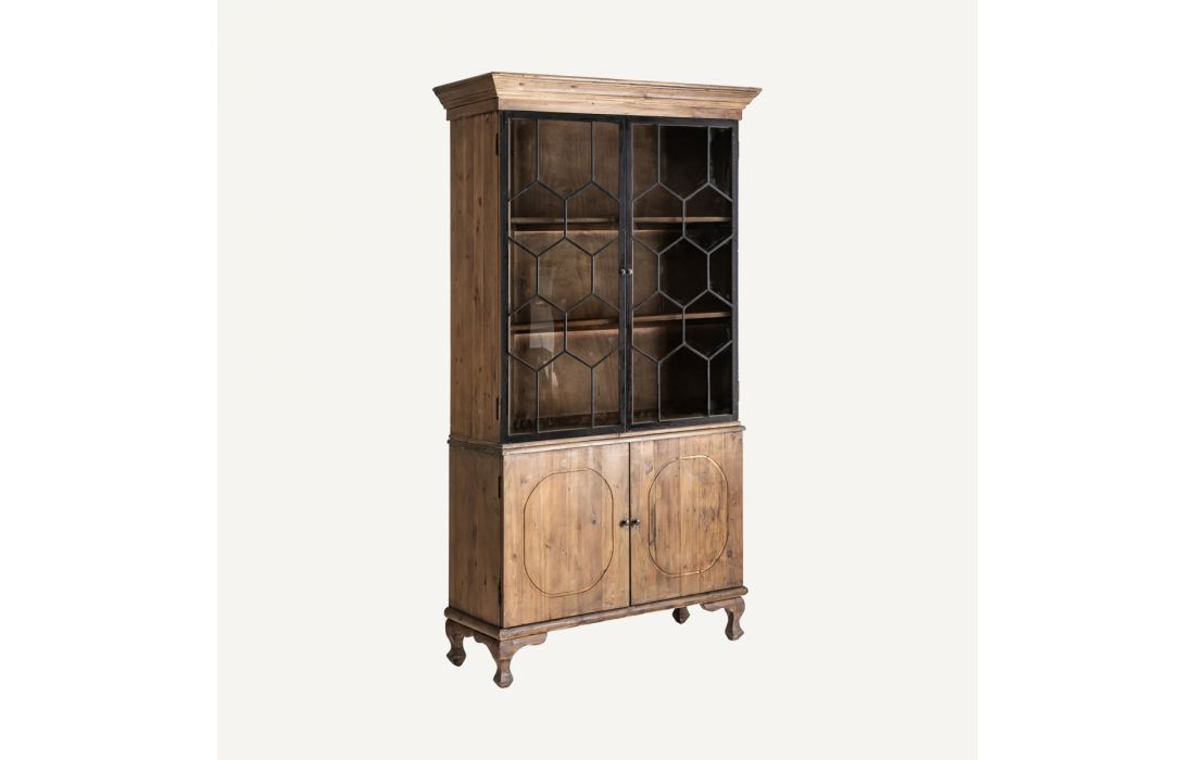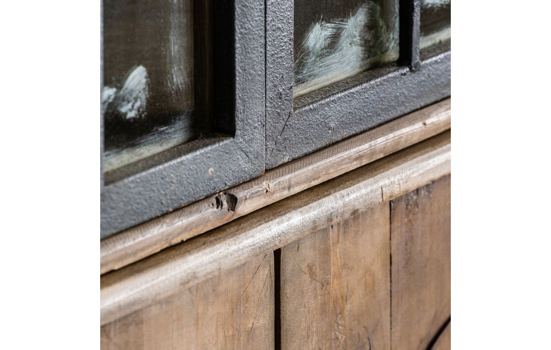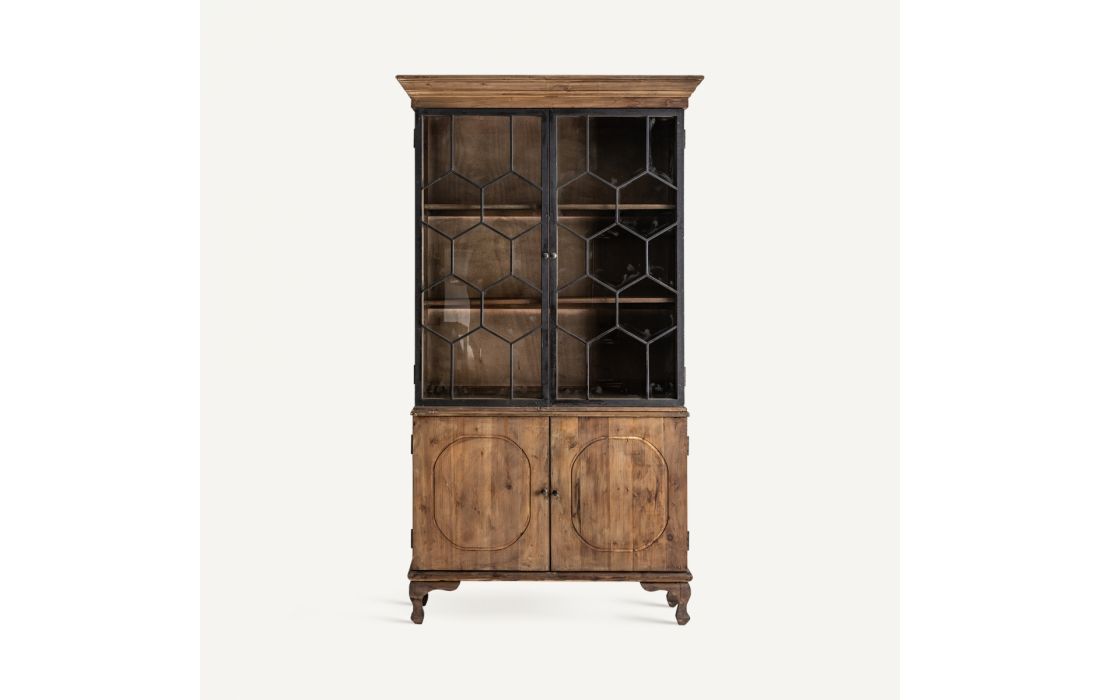 Bar cabinet in natural colored recycled pine wood, with iron and glass doors.Dimensions in cm