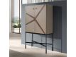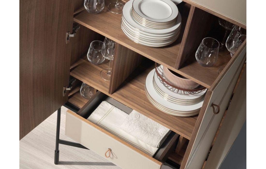 Modern design high sideboard with natural walnut MDF structure, upholstered in mink-colored cowhide leather and black stainless steel legs and ample storage space with 1 drawer and 2 doorsRecipient :
