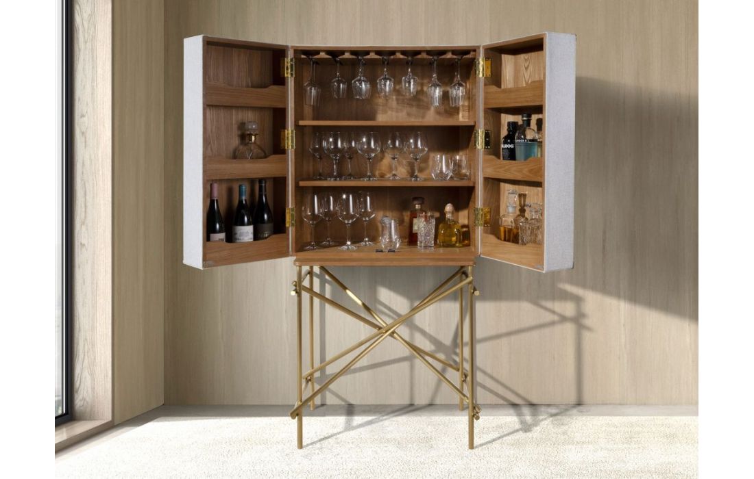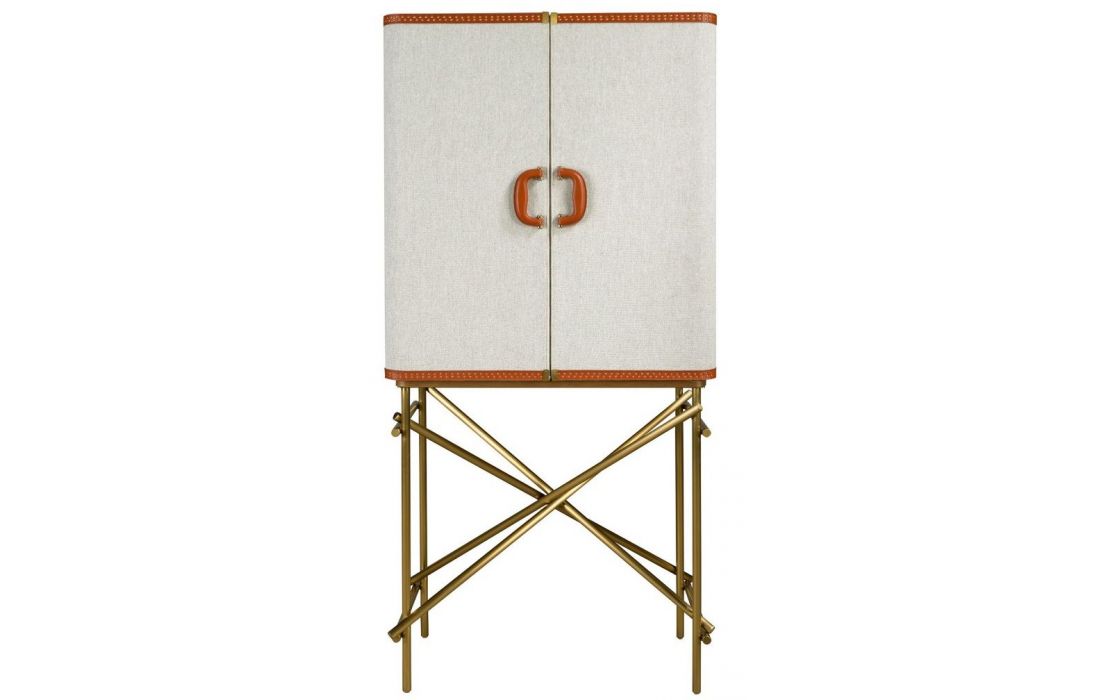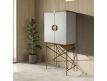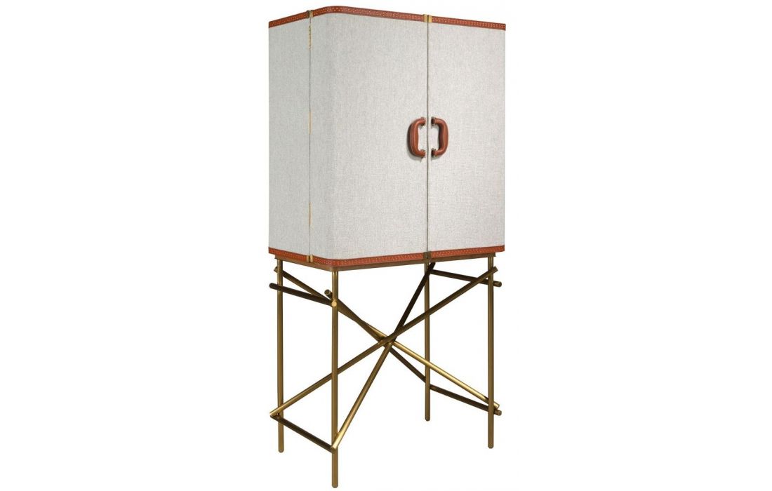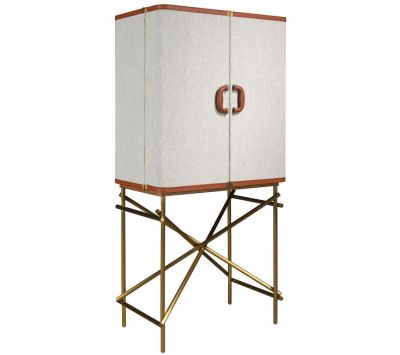 Modern design high sideboard with natural walnut MDF structure, fabric upholstery and stainless steel legs with cowhide details and 2 doorsRecipient :