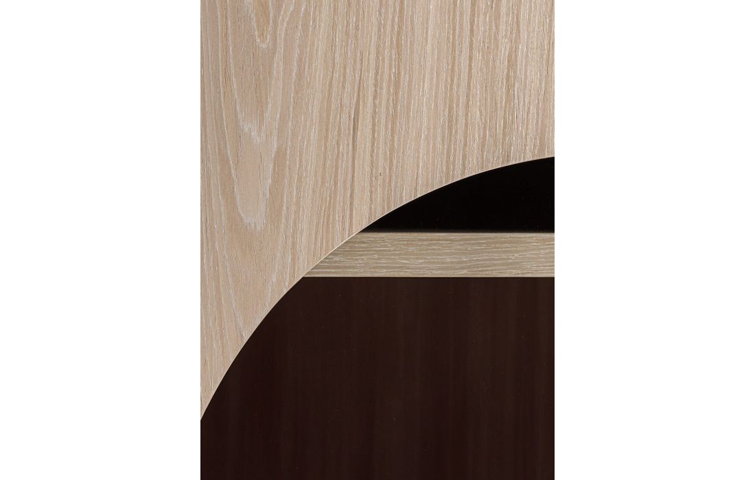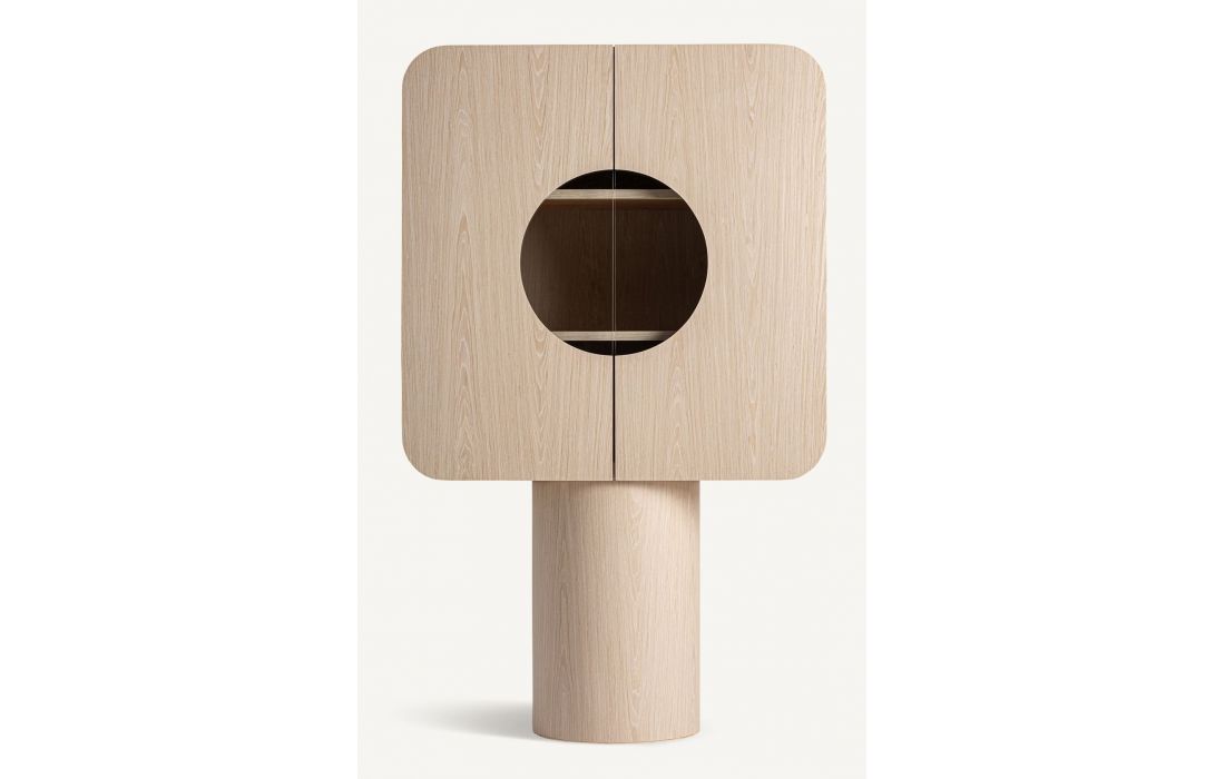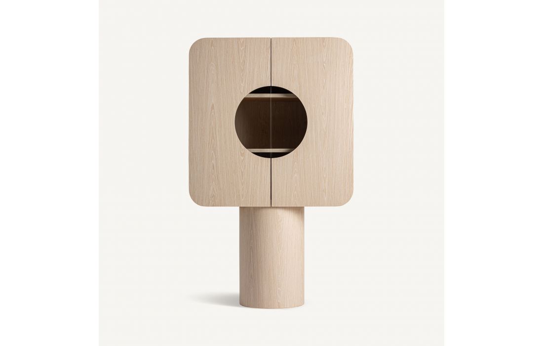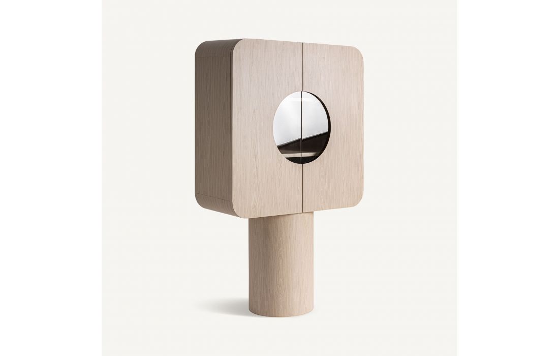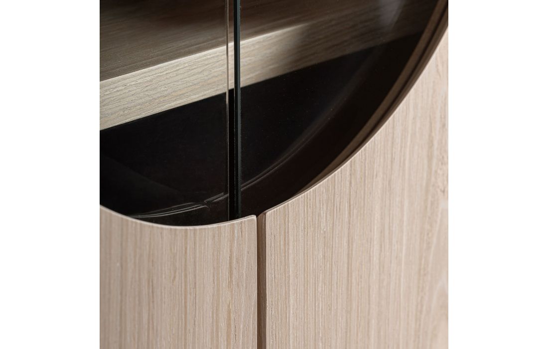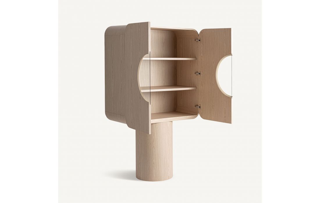 The KHARJ CABINET expresses a minimalist and warm art deco style.Its oak and transparent glass provide visual lightness and a sculptural design with plenty of personality.