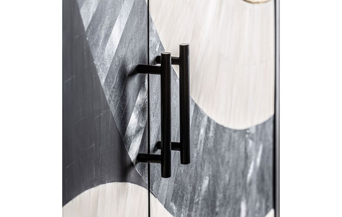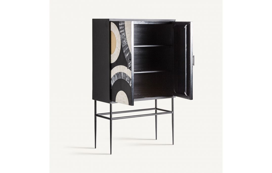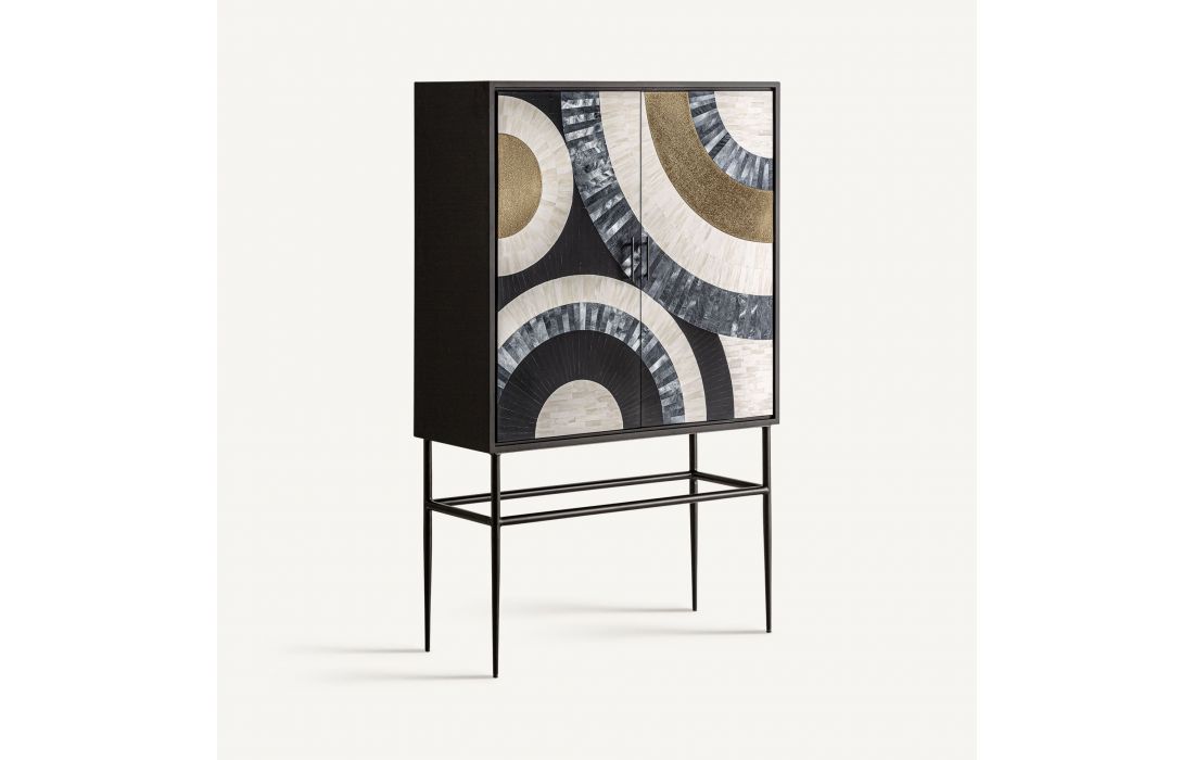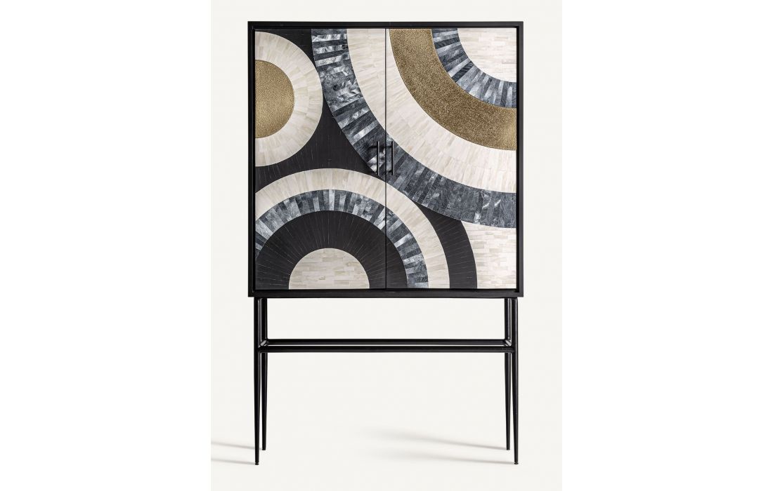 The DARU CABINET reinterprets Art Deco; this removable piece stands out for its geometric design and contrasting materials.Ideal for interiors seeking sophistication with personality.